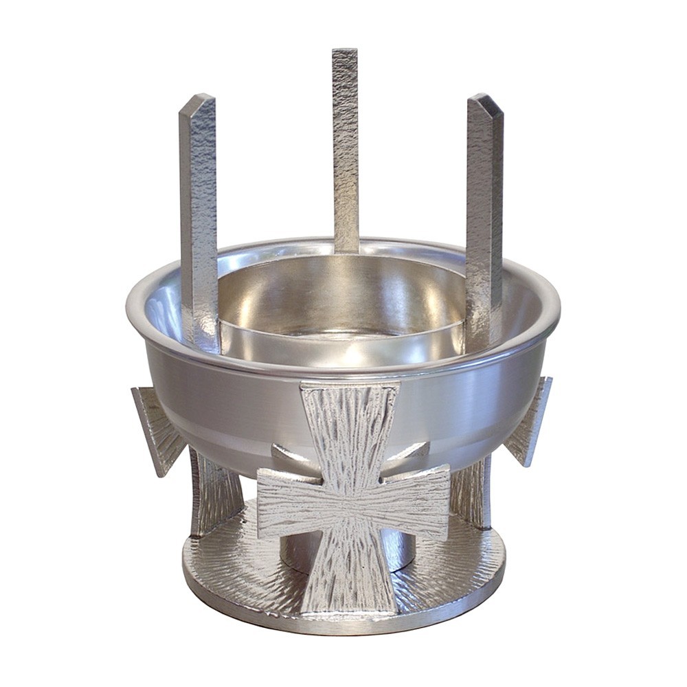 Lampada da altare per il Santissimo Sacramento. Realizzata interamente in ottone con finituara argentata. La base della lampada è finemente decorata con croci lavorate.