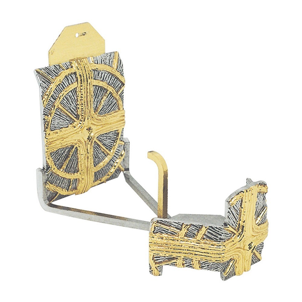 Lampada da muro per il Santissimo Sacramento. Questo portalampada è un arredo sacro per la Chiesa, realizzato in ottone bicolore. Decorato con graziose croci dorate e raggi a rilievo sullo sfondo argentato. La lampada può contenere sia il bicchiere che il cerone per il Santissimo. Ideale per ogni cappella.