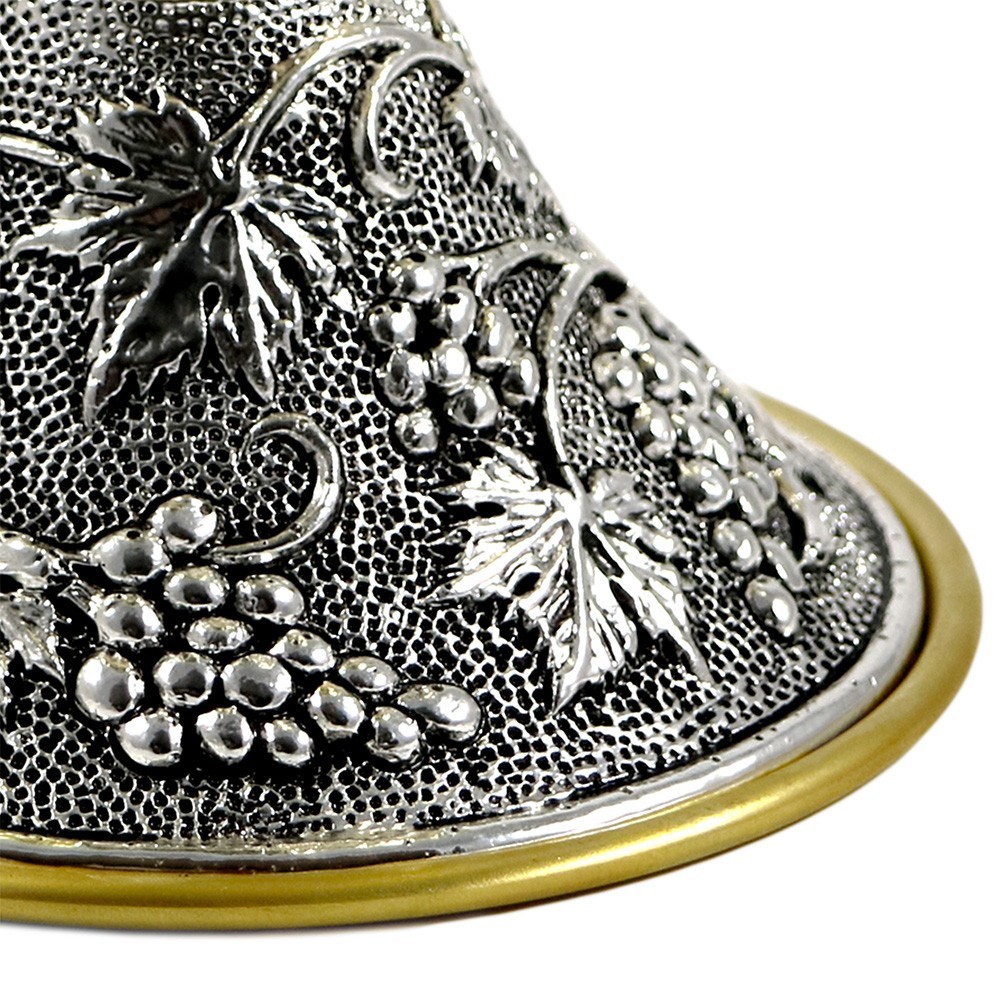 Il candeliere è in ottone 24k, si presenta con base finemente lavorata con decori a rilievo raffigurante "Uva e Foglie di vite".