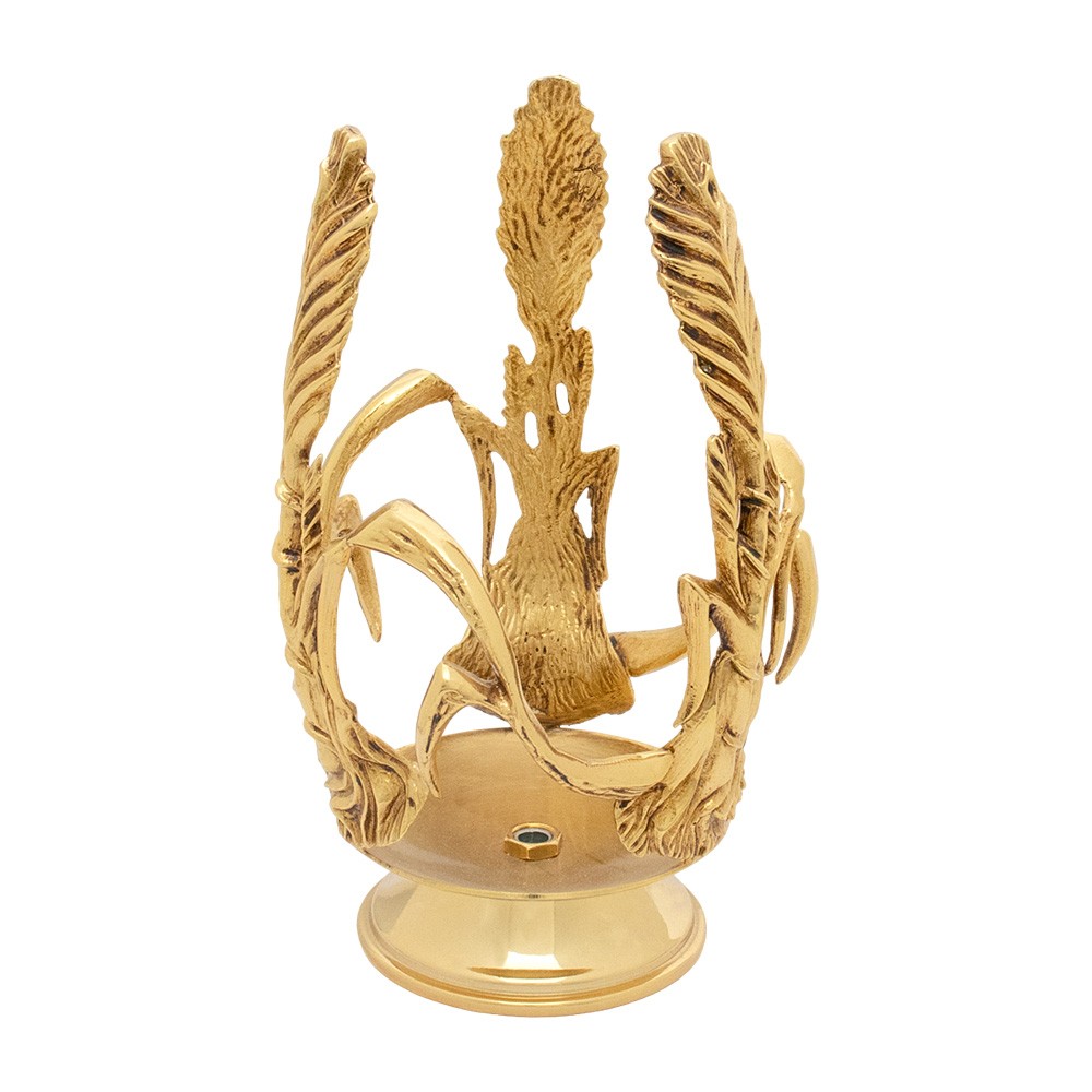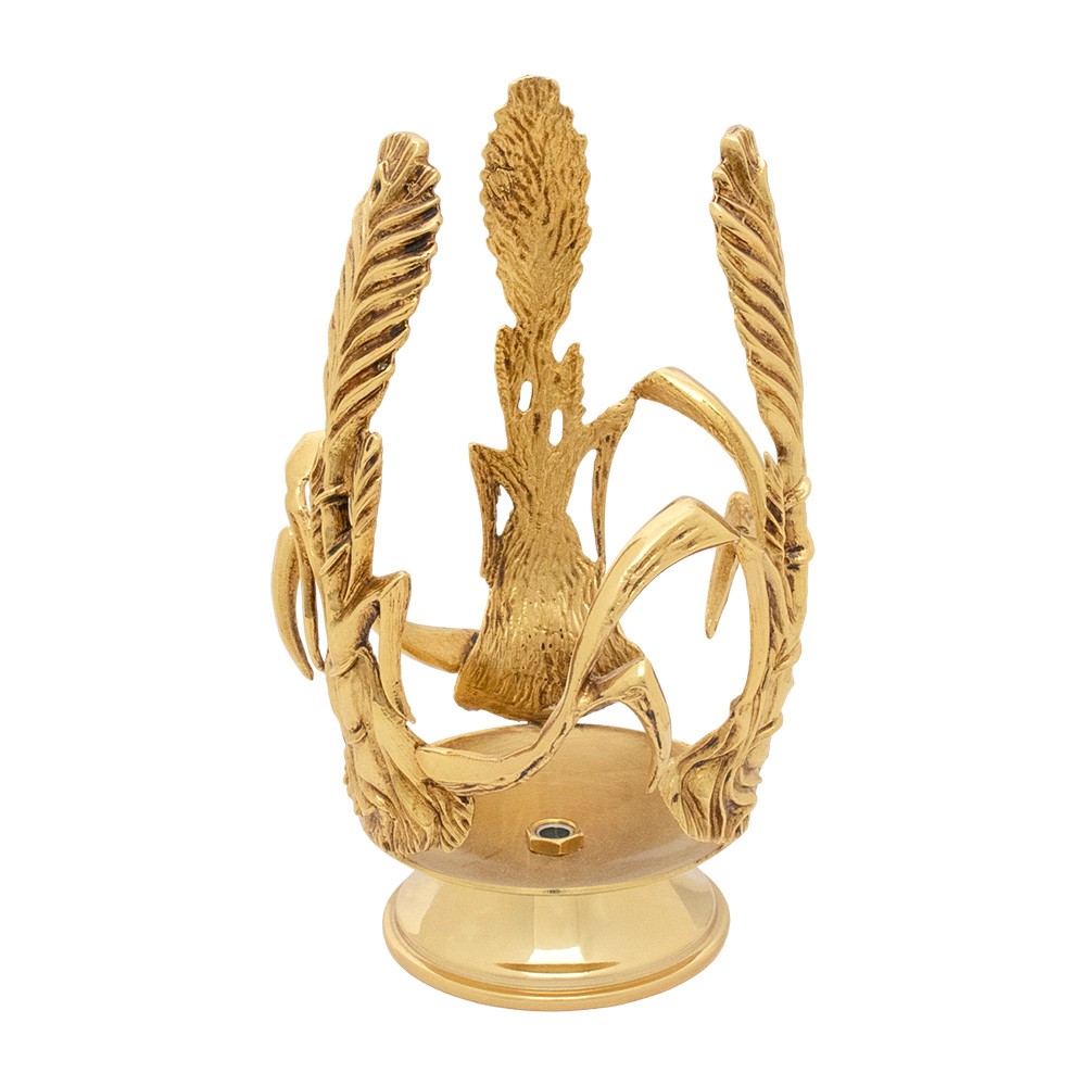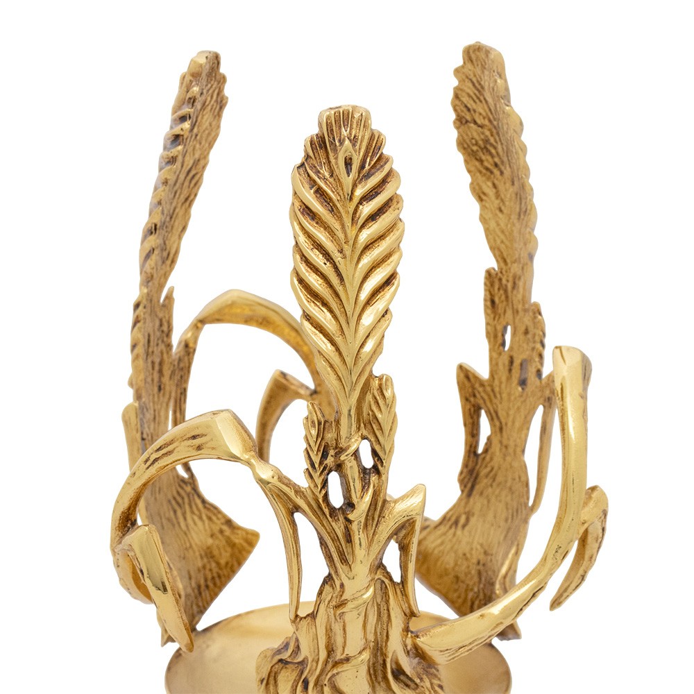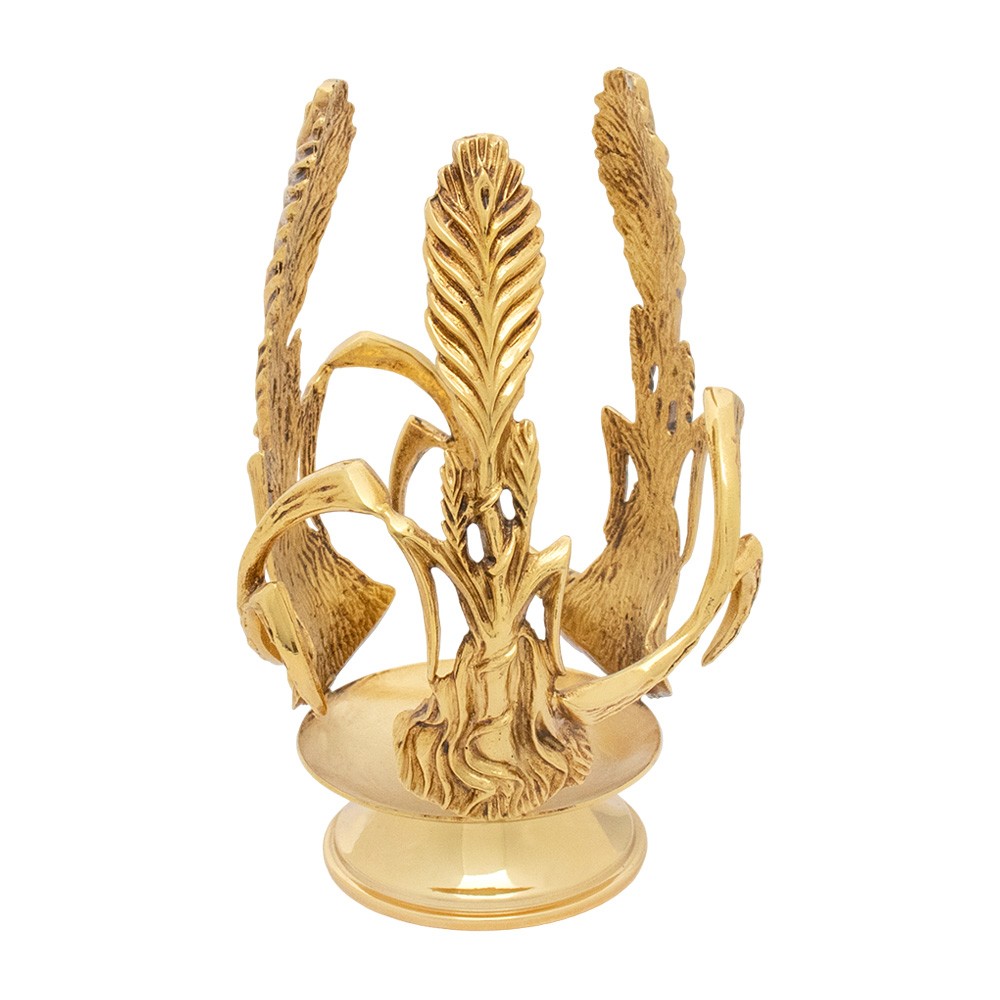 Questo arredo sacro da mensa è realizzato interamente in ottone dorato con decoro spighe di grano, perfetta per ogni cappella.