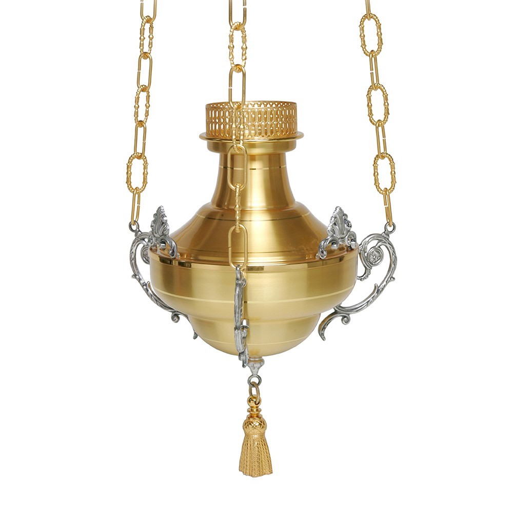 Lampada Santissimo in ottone bicolore, h 110 cm.