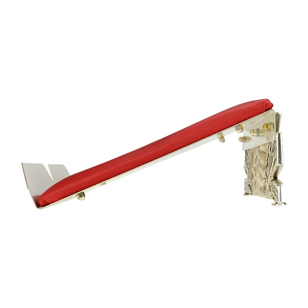Leggio da tavolo con finitura argento e inserti in metallo dorato.