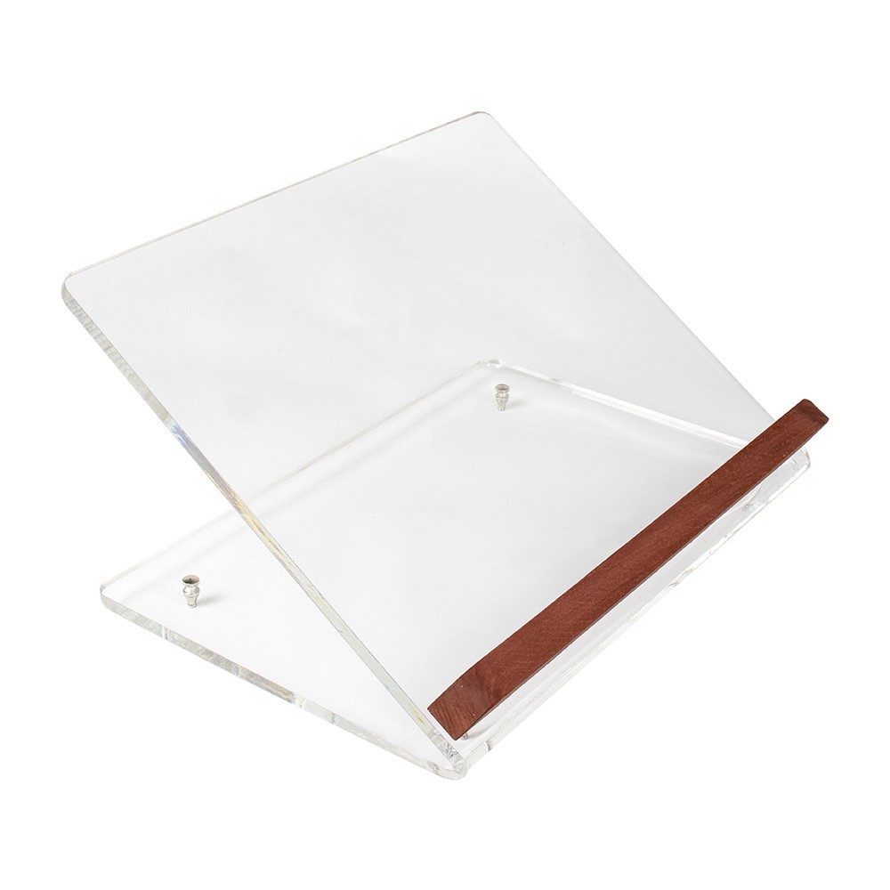Leggio in plexiglass 40x30 cm. Questo leggio da tavolo è realizzato interamente in plexiglass con piano d'appoggio fisso. Pratico e leggero adatto a tutti i tipi di libri.