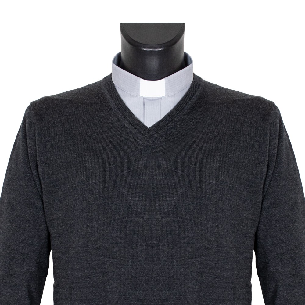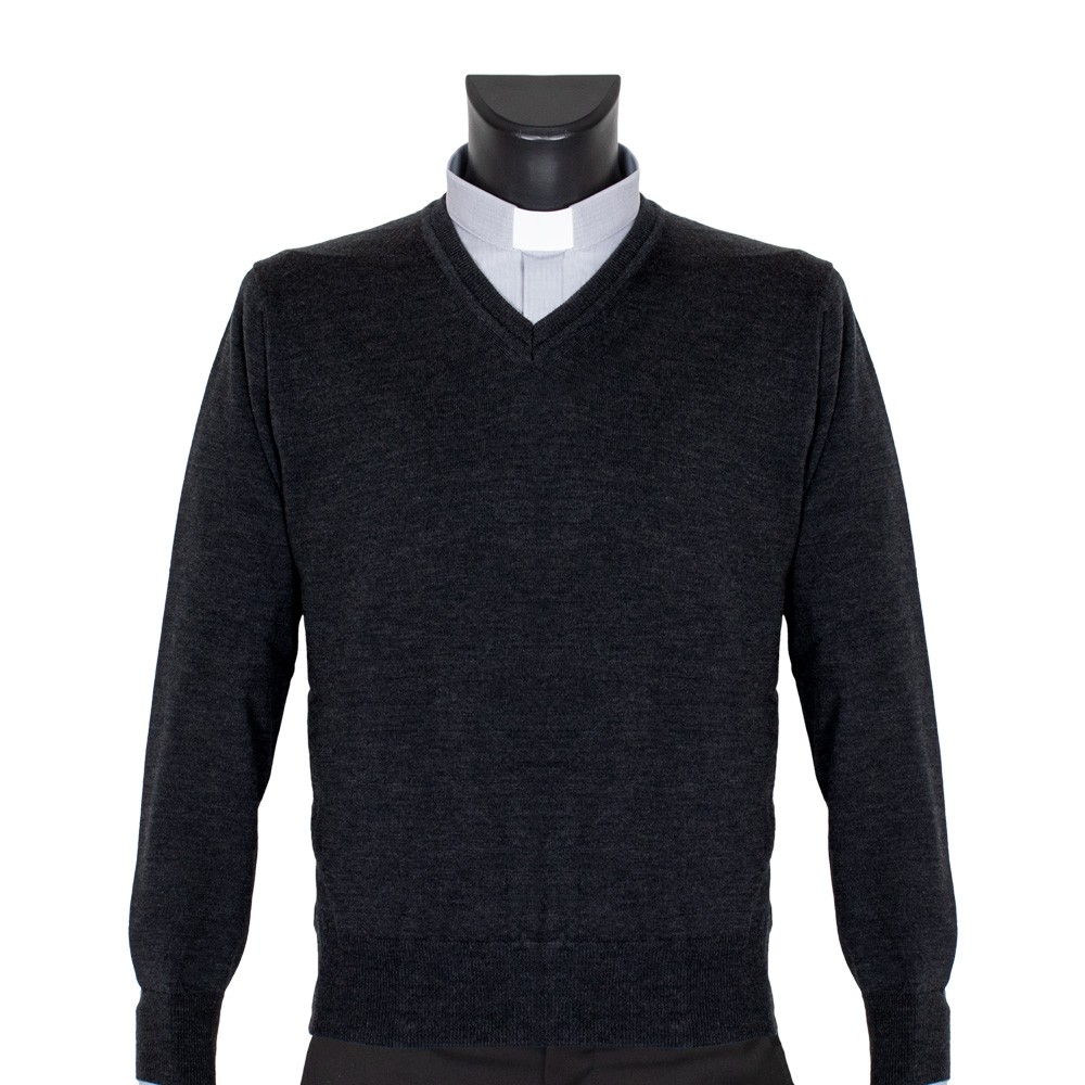 Pullover per sacerdote con collo a V in tessuto pura lana.