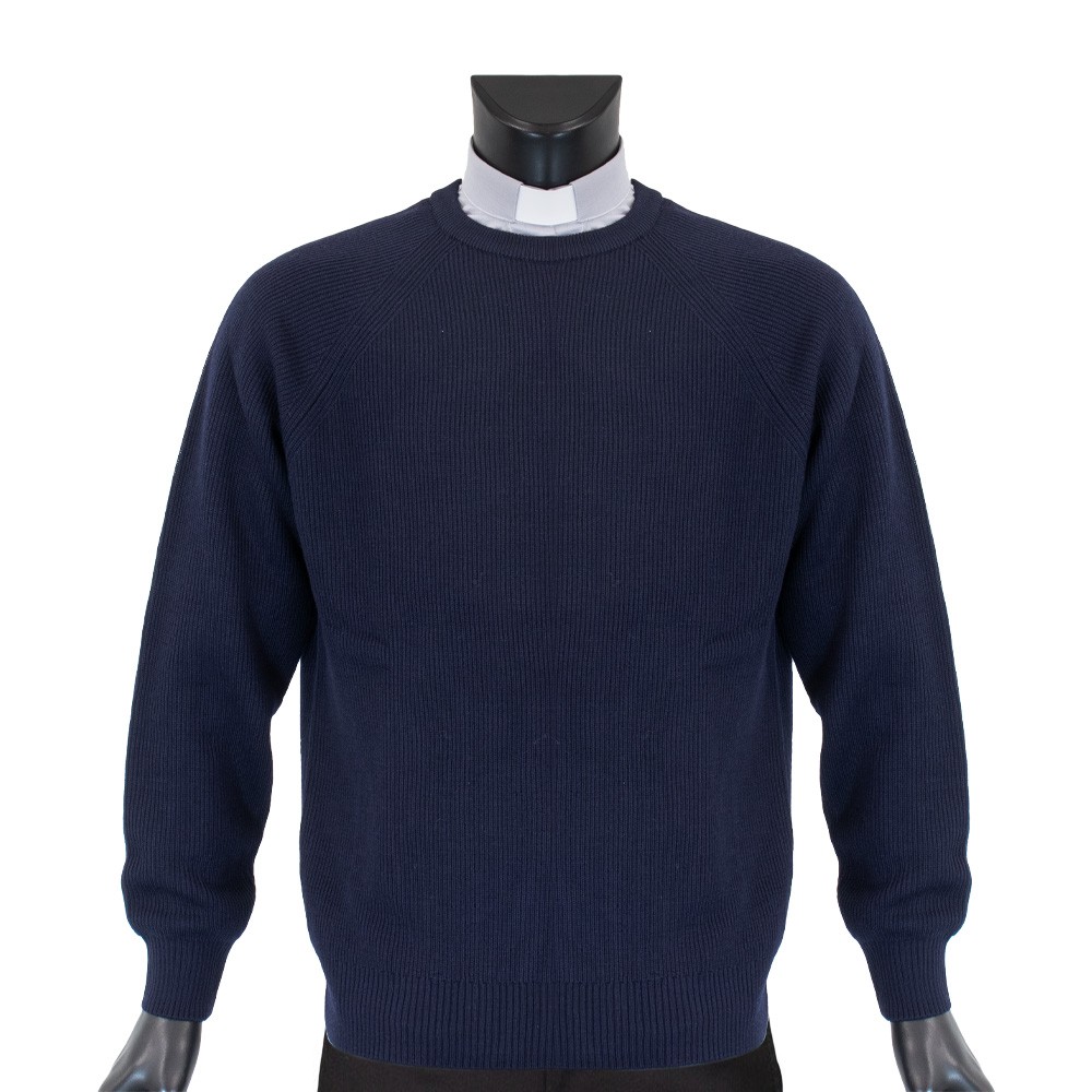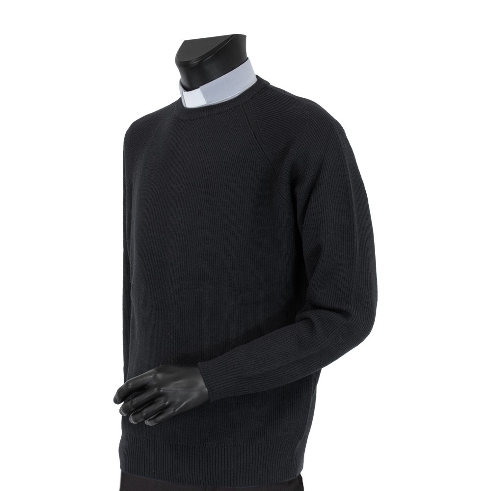 Pullover sacerdotale girocollo in misto lana, disponibile nero, blu e grigio scuro.