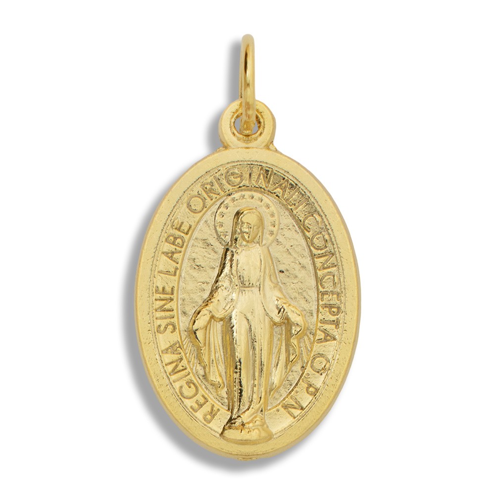Medaglietta della Madonna Miracolosa in metallo con finitura oro.