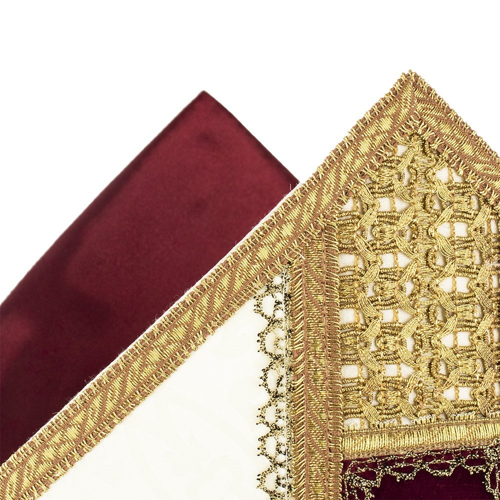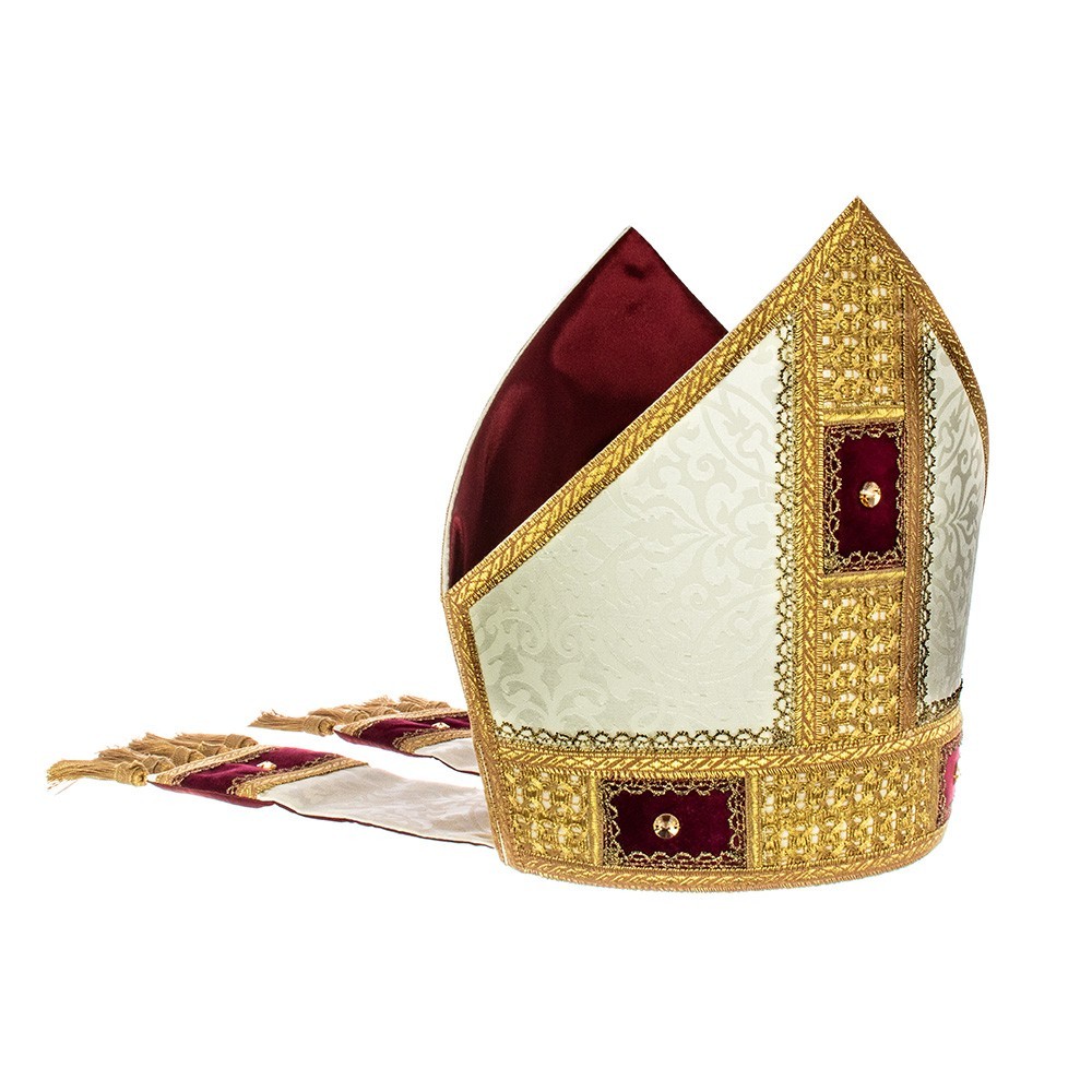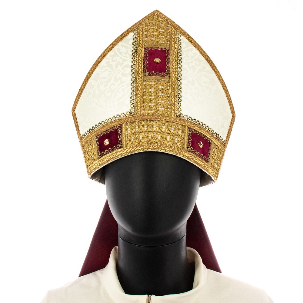 Questa preziosa mitria liturgica è disponibile in taglia 57.5 cm.