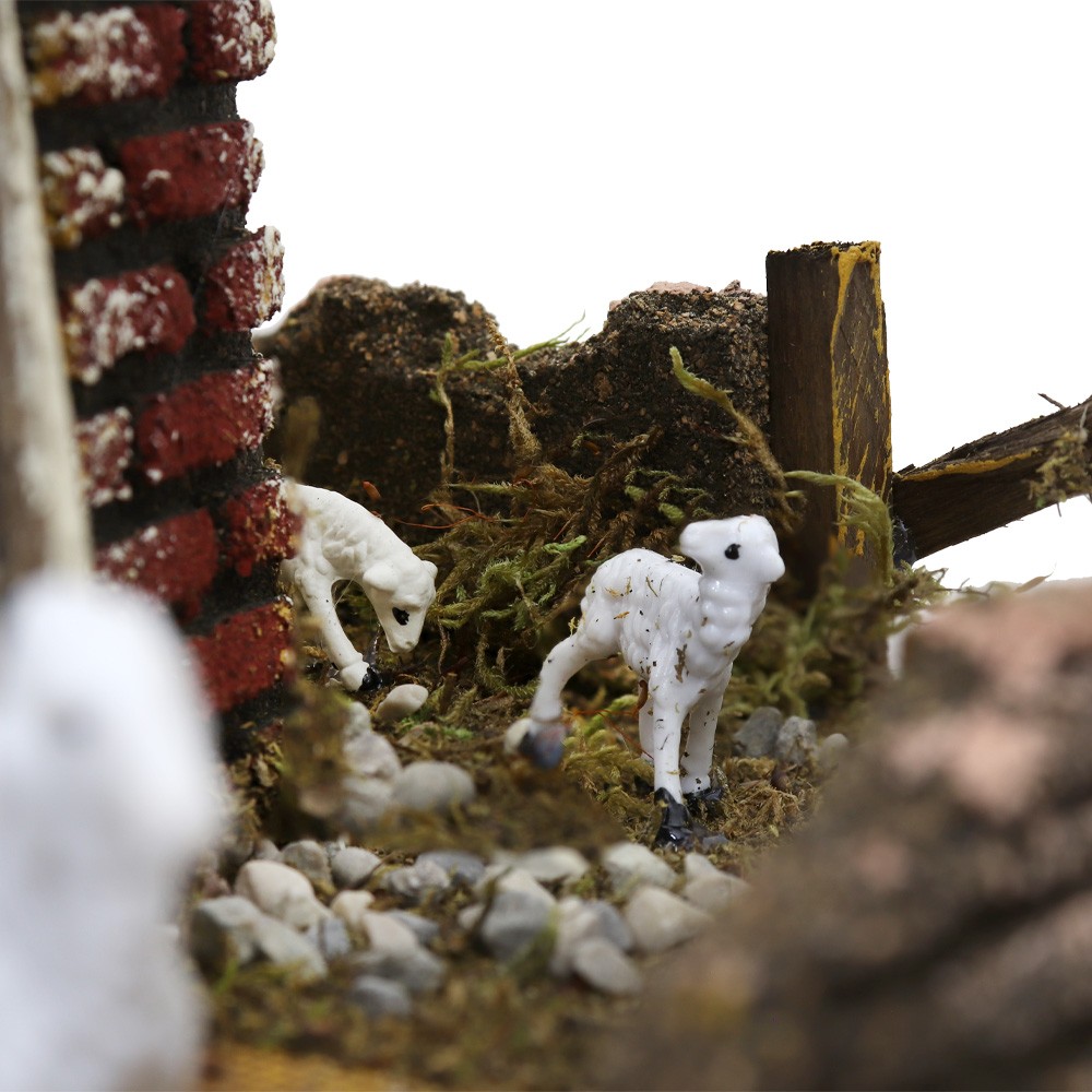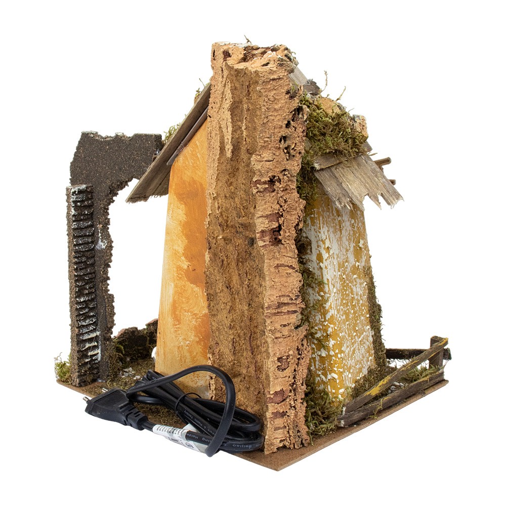 Mulino elettrico per il presepe in legno, muschio e sughero.