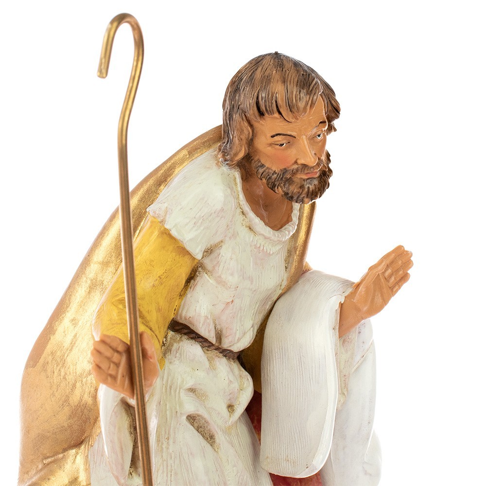 Composta da 5 pezzi: San Giuseppe, la Madonna, Gesù Bambino, bue e asinello. Realizzata in PVC, colorazione tipo legno. Tutti i personaggi prodotti da questa azienda sono dipinti interamente a mano. Prodotto made in Italy.