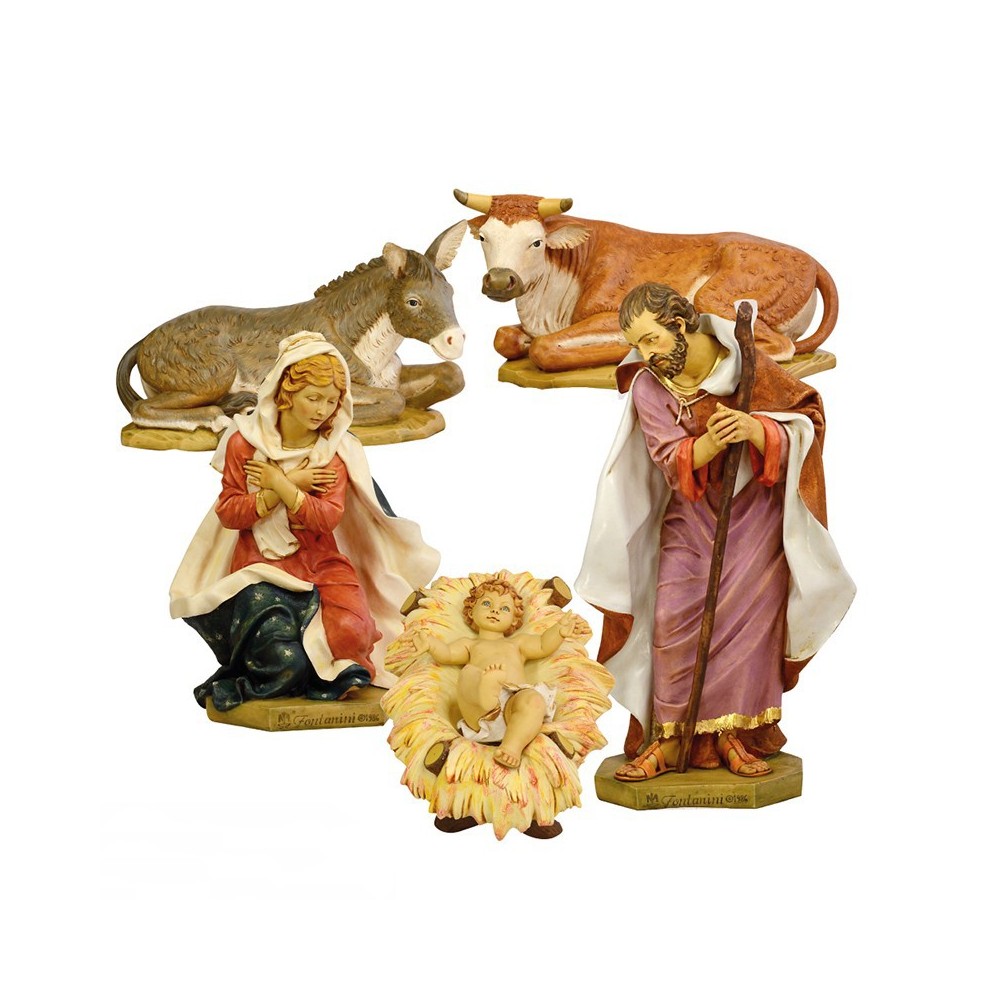 Composta da 5 pezzi: San Giuseppe, Madonna e Gesù Bambino, bue e asinello. Le statue sono realizzate in PVC e dipinte interamente a mano pezzo per pezzo da personale qualificato. La tradizione e l'innovazione, la fantasia e la tecnica distinguono da anni questa azienda. Prodotto 100% italiano.