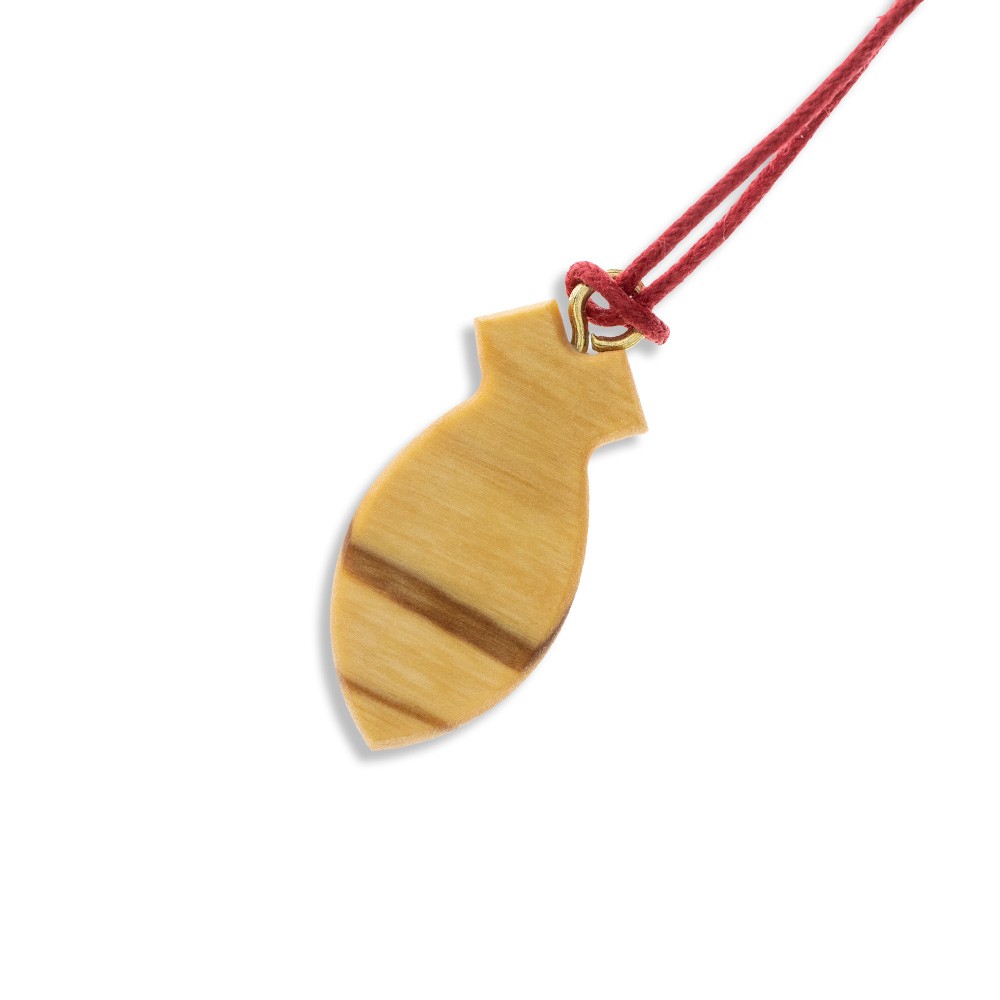 - Pendente in legno di ulivo con cordino colorato.