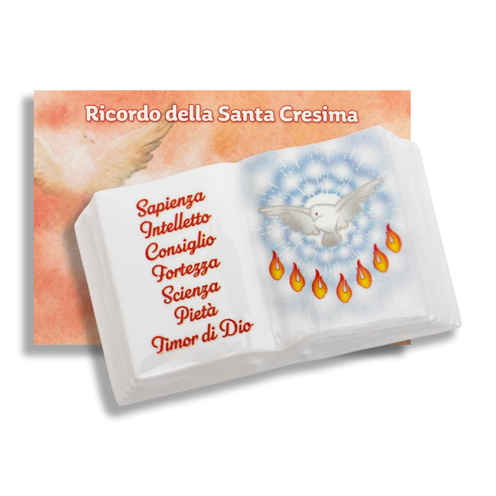 Consegna garantita in 24/48hPiastrella in ceramica 10x10 cm con immagine dello Spirito Santo. Ideale come ricordino o bomboniera per la Cresima. Produzione italiana