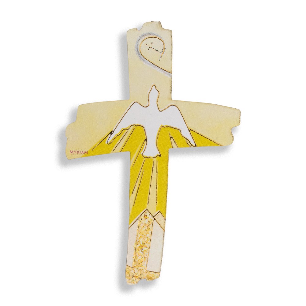 Croce pendente Spirito Santo con laccetto e cartoncino.