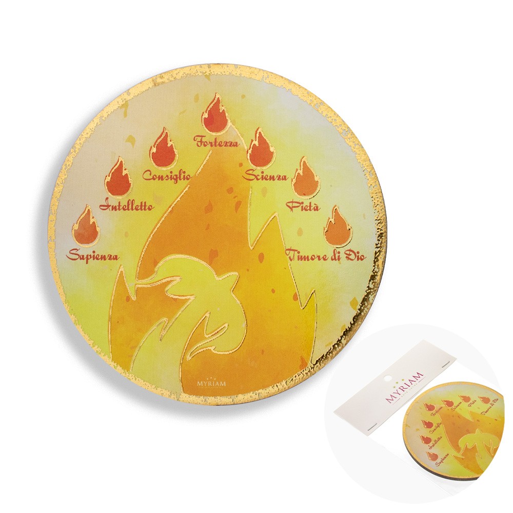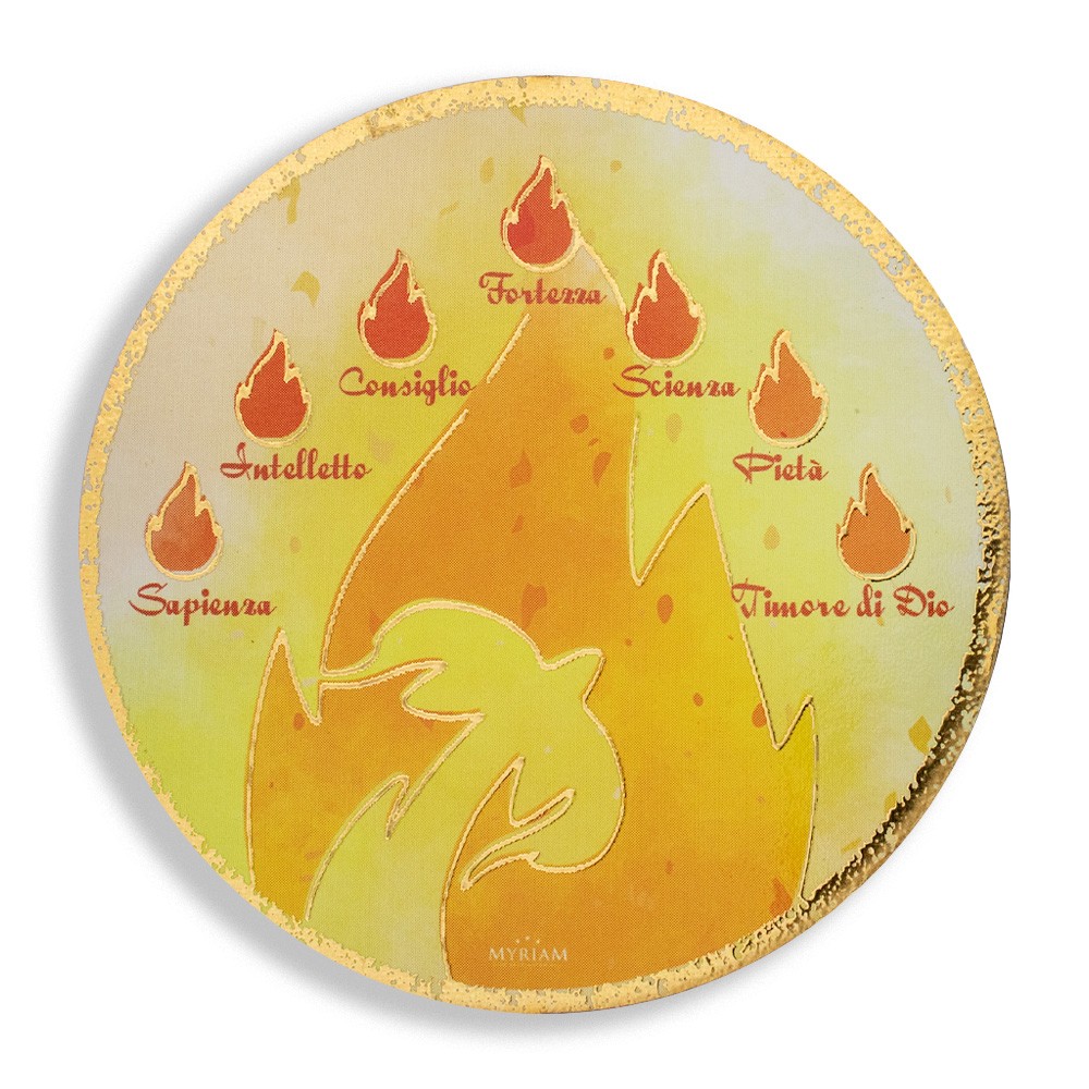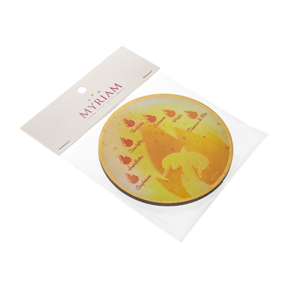Magnete Cresima con decorazioni raffiguranti i sette doni dello Spirito Santo e la colomba.