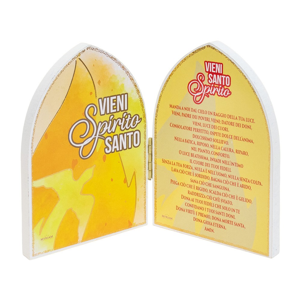 Realizzato in MDF da un lato vi è raffigurato lo Spirito Santo e e dall'altro lato è stampata la frase la preghiera.