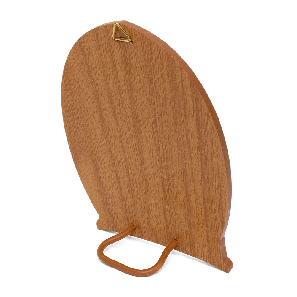 Realizzato interamente in polimero con immagine effetto lucido e dettagli in oro a caldo. Dotato di triangolino in metallo per appenderlo alla parete e piedino in polimero per essere appoggiato.