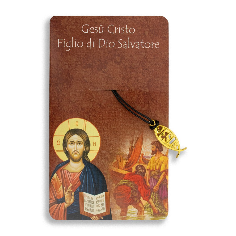 Confezione con collanina ICHTHUS e cartoncino decorato con stampa sul redo della preghiera "CREDO".