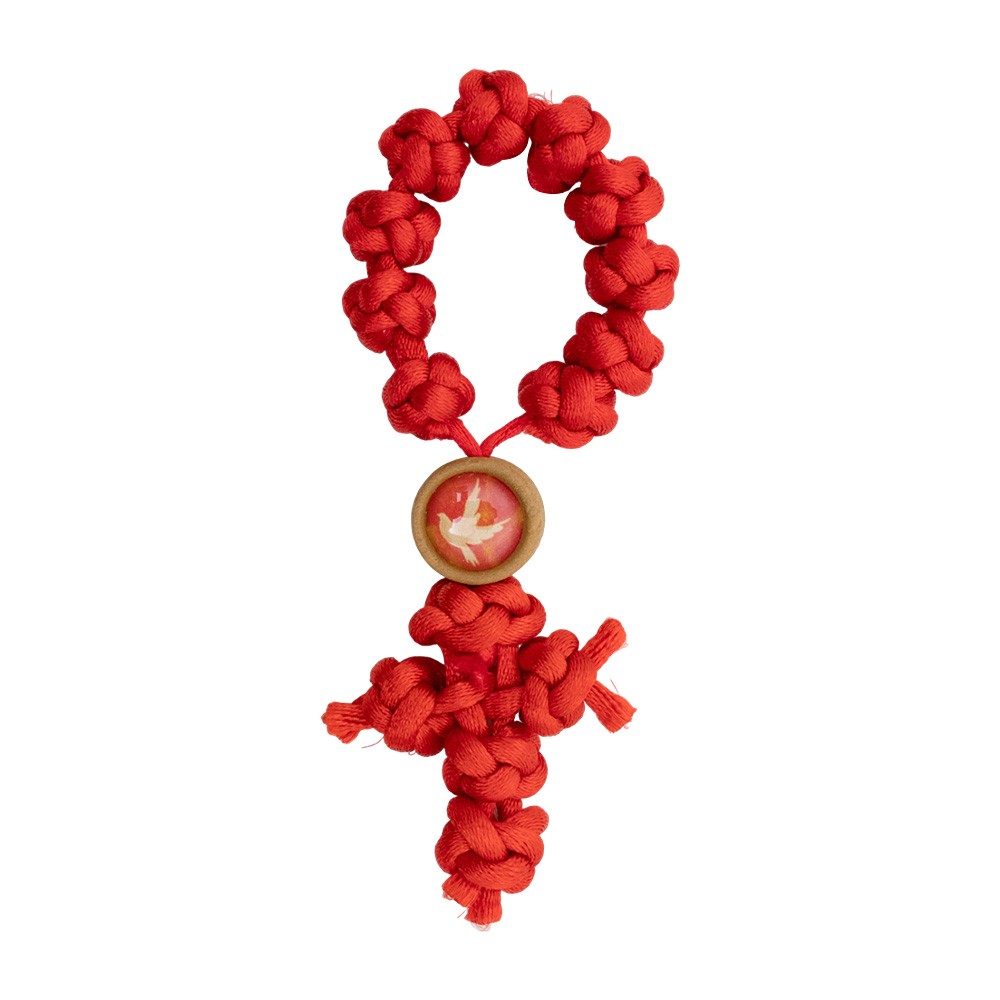 La scatolina è magnetica ed è finemente decorata, mentre la decina è realizzata in corda rossa con crociera in legno smaltata.