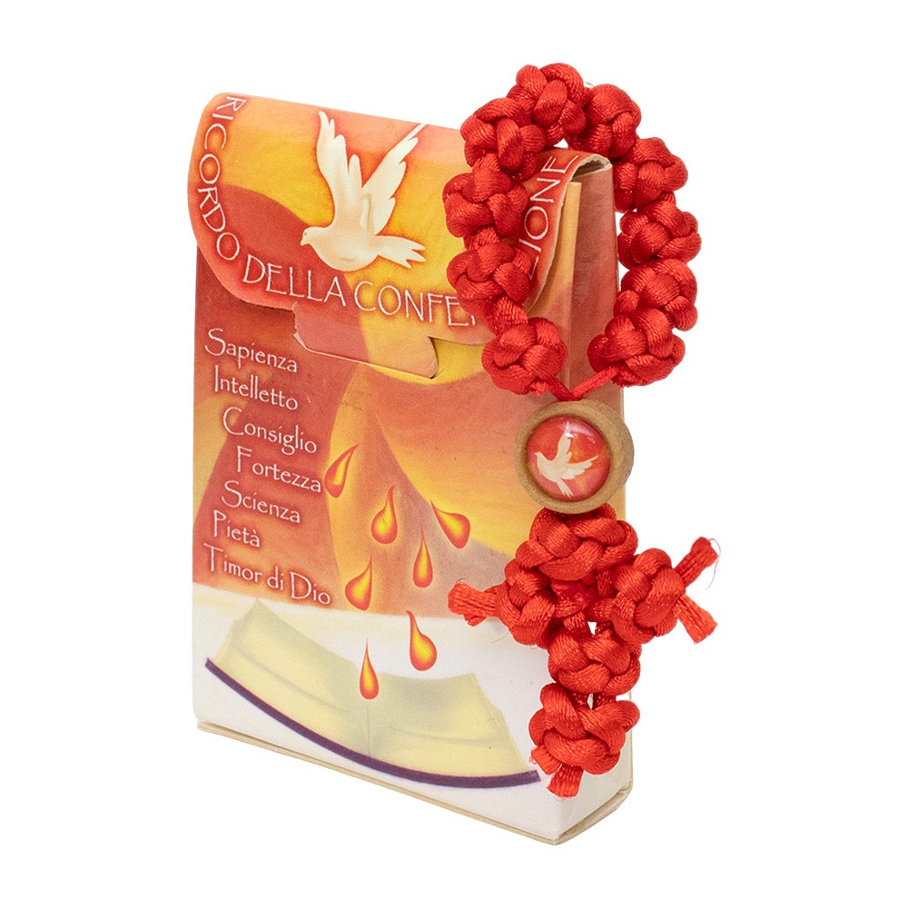 Scatola magnetica con all'interno una graziosa decina in corda rossa con crociera in legno.