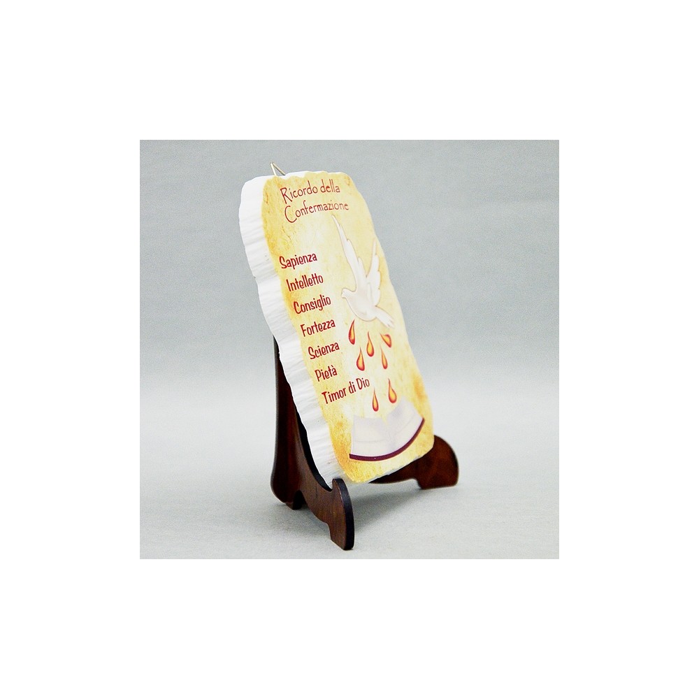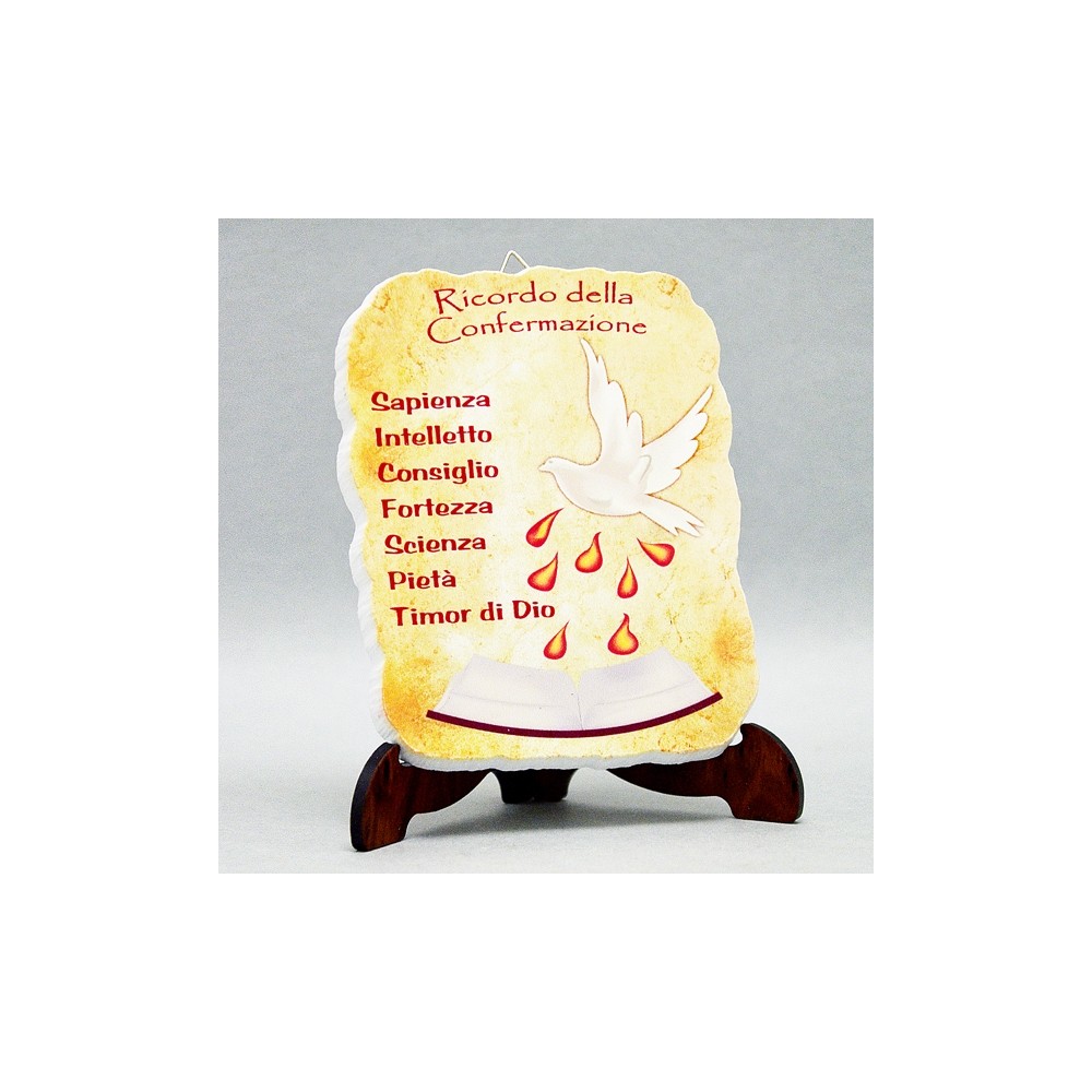Quadretto in legno per la Cresima, lavorato artigianalmente. Confezionato in elegante scatola regalo, ideale come bomboniera o dono per il sacramento.