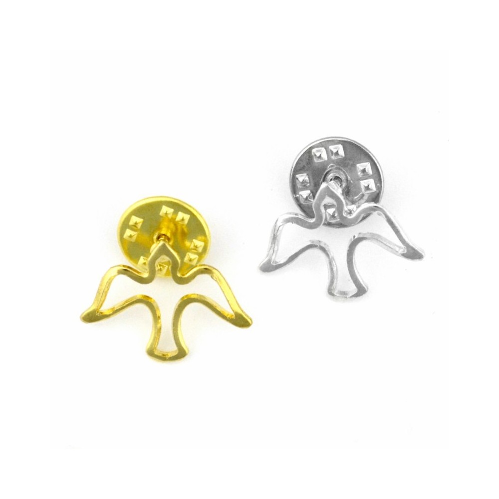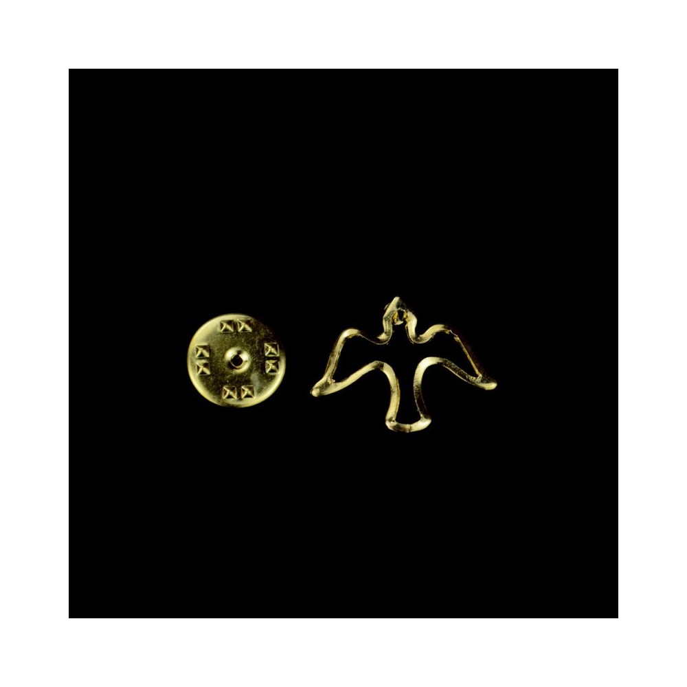 Spilletta con Colomba traforata realizzata in metallo dorato. La sagoma rappresenta una Colomba traforata