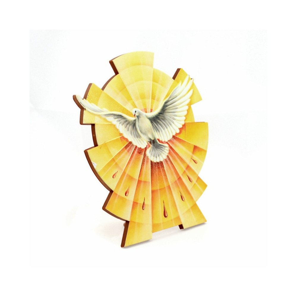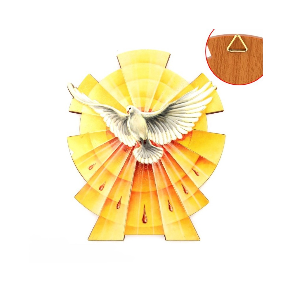 Il quadretto è realizzato in polimero raffigura l'immagine della colomba simbolo del sacramento della Cresima. Può essere appeso o anche appoggiato. Corredato di piedino e gancino triangolare in plastica.