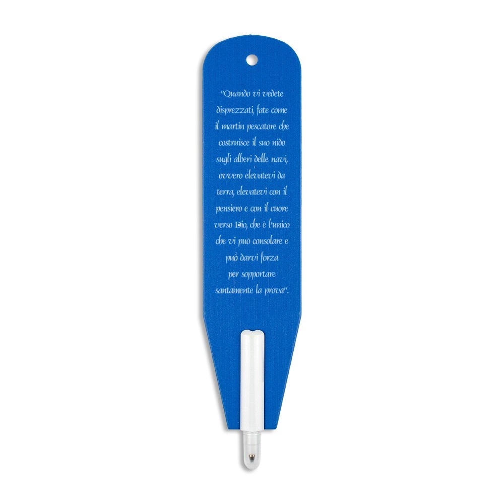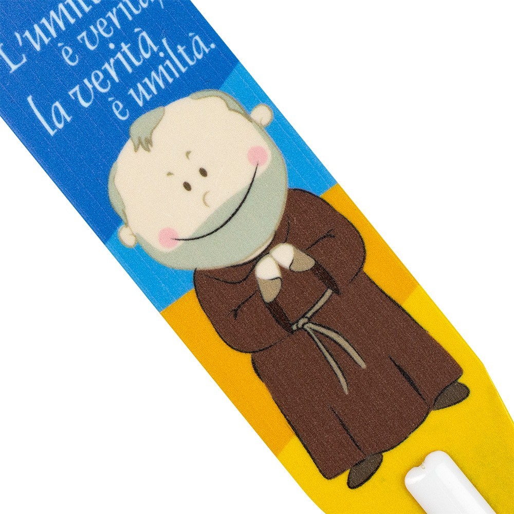 Penna segnalibro San Pio con immagine stampata e preghiera.