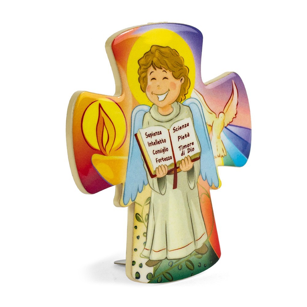 Consegna garantita in 24/48hCroce Cresima in plex con immagine della Colomba e dei 7 doni.