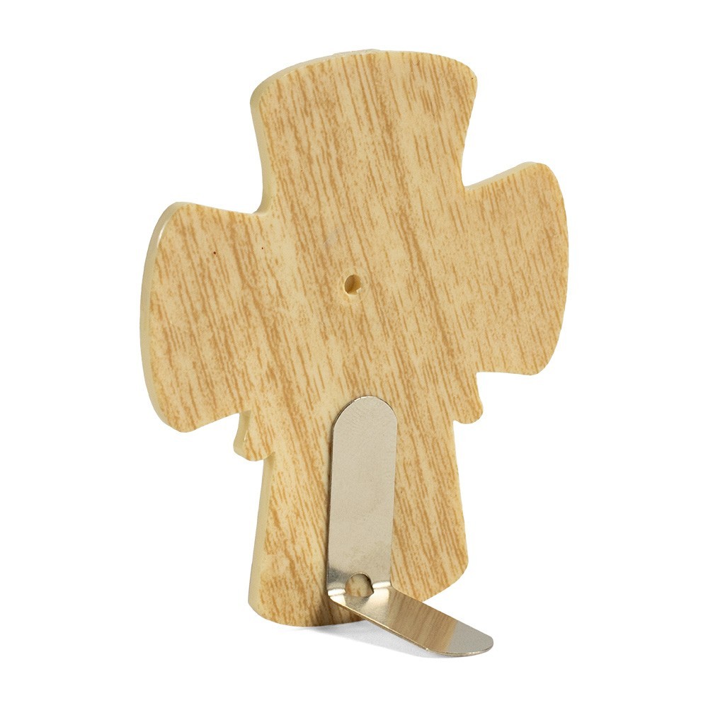 Magnete a forma di croce completo di cartoncino colorato con preghiera sul retro. Sulla croce è decorato un angioletto realizzato in polimero. Made in Italy.