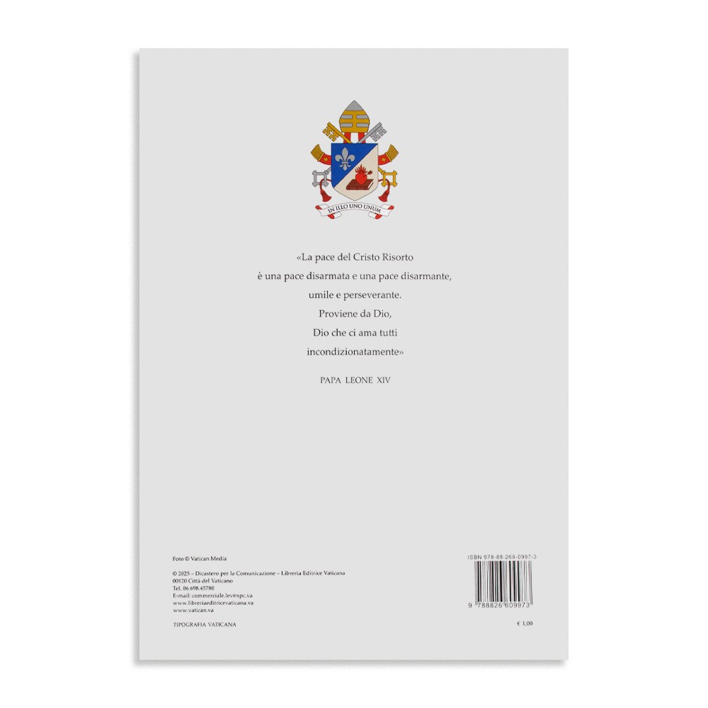 Le dimensioni della foto sono 25x35 cm, sul fronte vi è l'immagine del Papa, mentre sul retro lo stemma e la frase in italiano "La pace del Cristo Risorto è una pace disarmata e una pace disarmante, umile e perseverante. Proviene da Dio, Dio che ci ama tutti incondizionatamente".