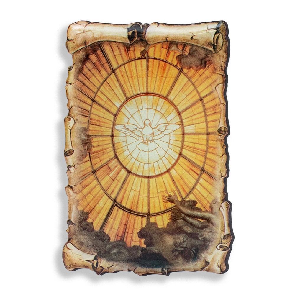 Magnete rettangolare a forma di pergamena con immagine dello Spirito Santo.
