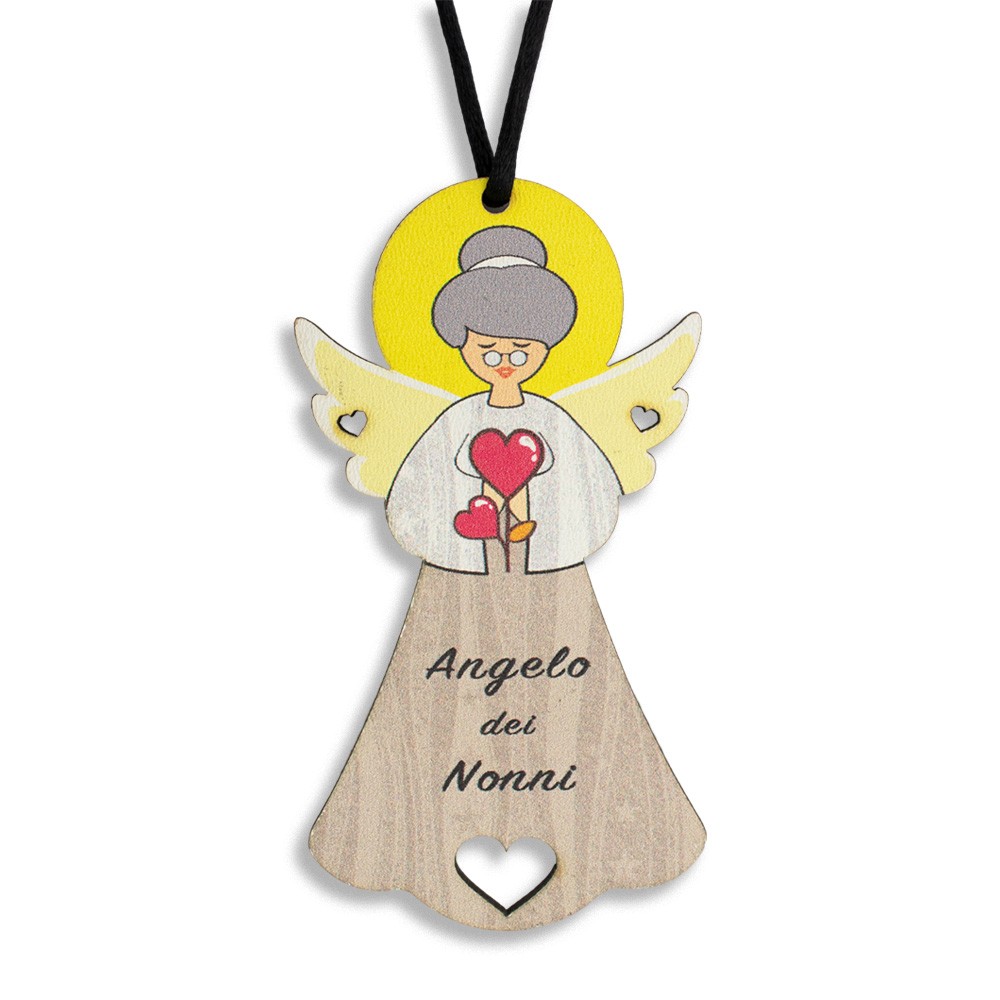 Il magnete è sagomato in MDF a forma di angioletto finemente decorato su fondo chiaro con stampa "Angelo dei Nonni".