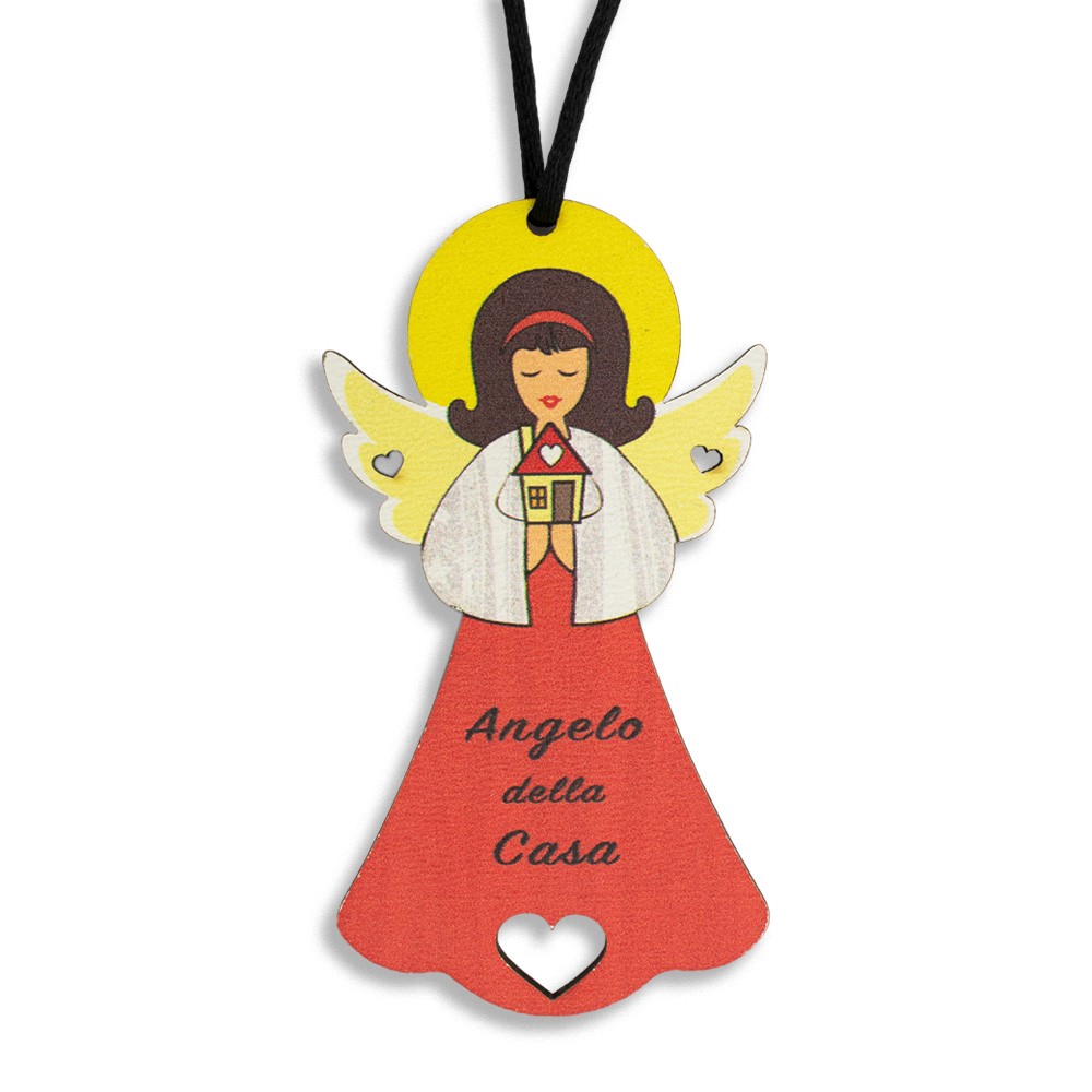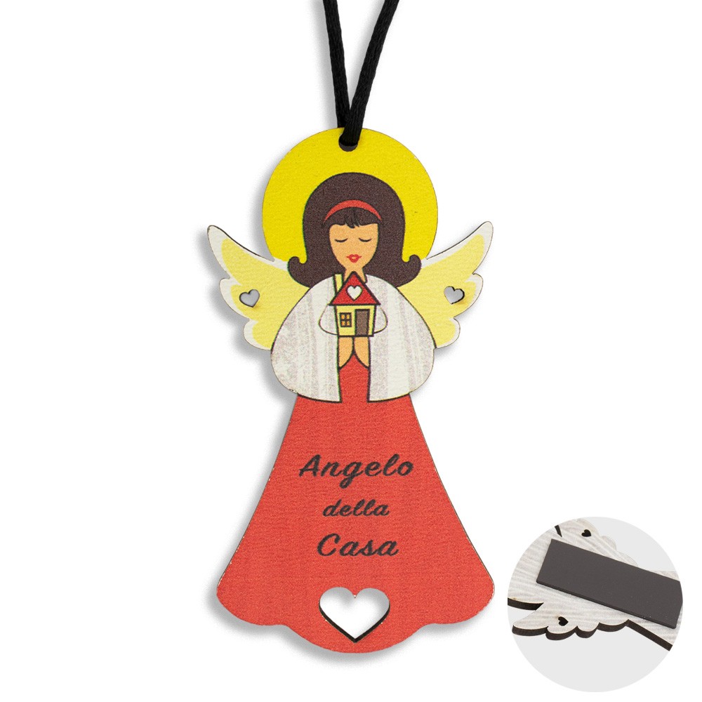 Il magnete è realizzato in MDF a forma di angioletto finemente decorato su fondo colorato con stampa "Angelo della Casa".