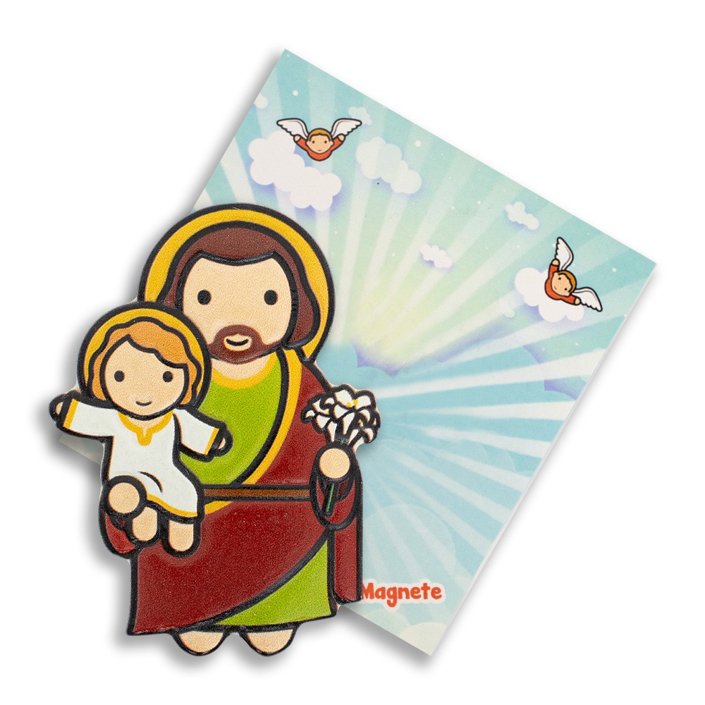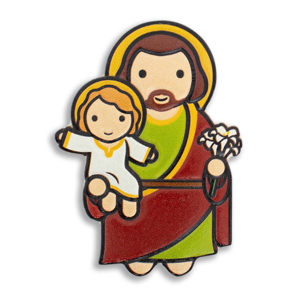 Simpatica calamita con sagoma di San Giuseppe con il bambino.