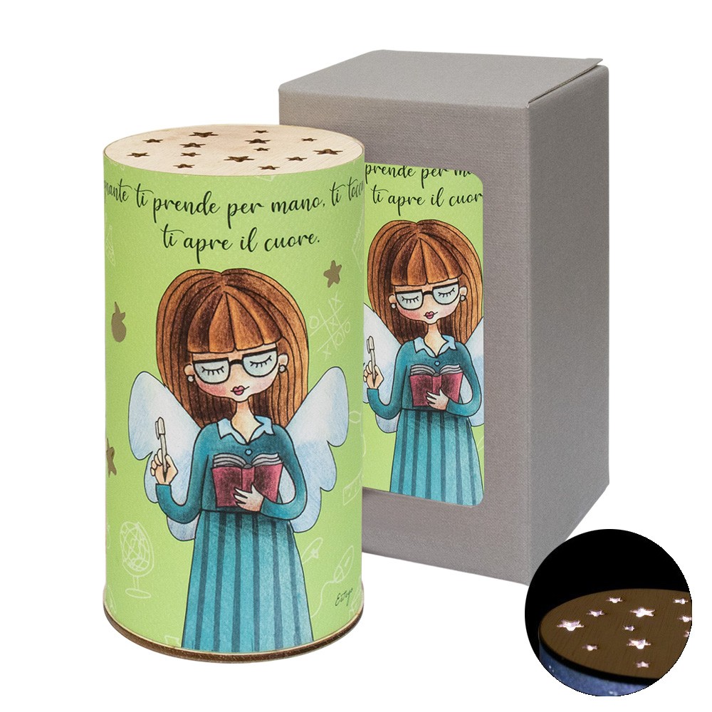 Lampada decorativa con frase dedicata all'insegnante. Luce soffusa e calda, perfetta per casa. Idea regalo speciale, confezionata in scatola regalo.