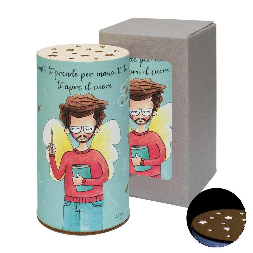 Lampada decorativa con frase dedicata all'insegnante. Idea regalo speciale, confezionata in scatola regalo.