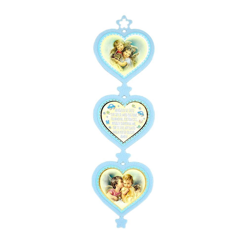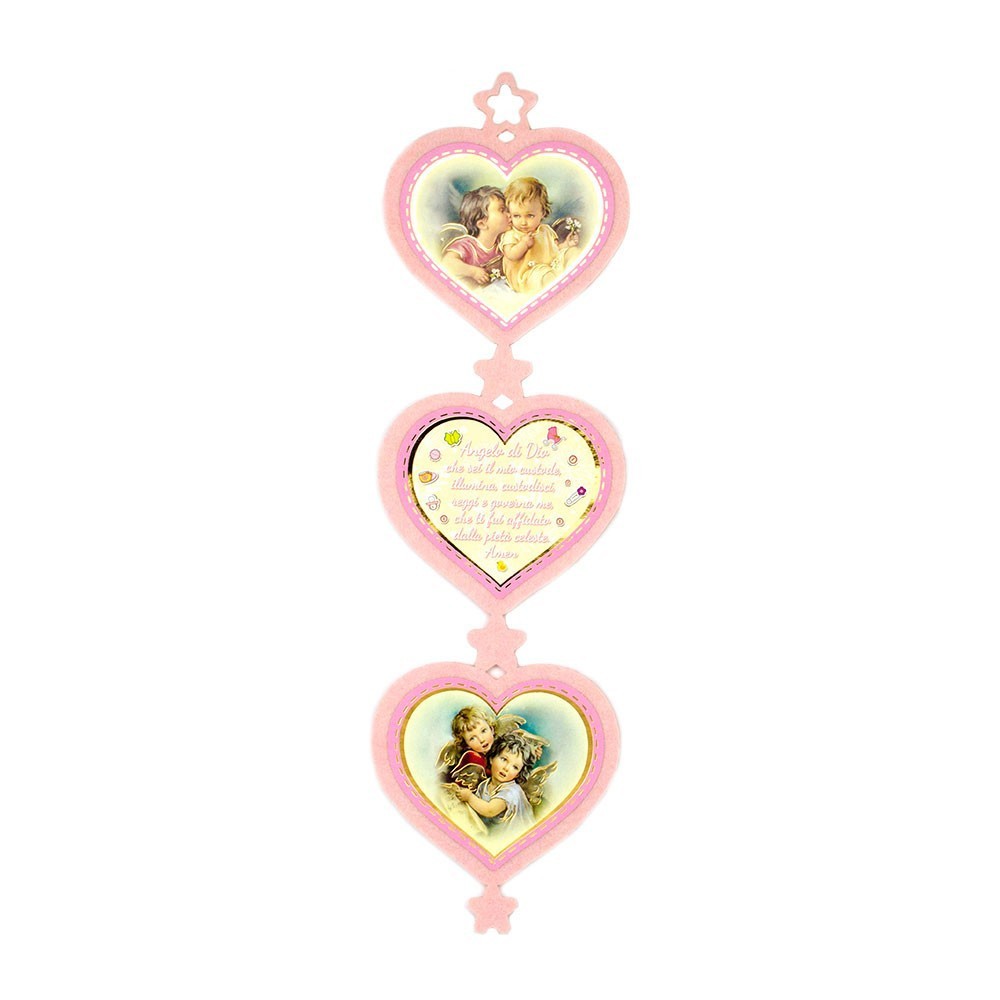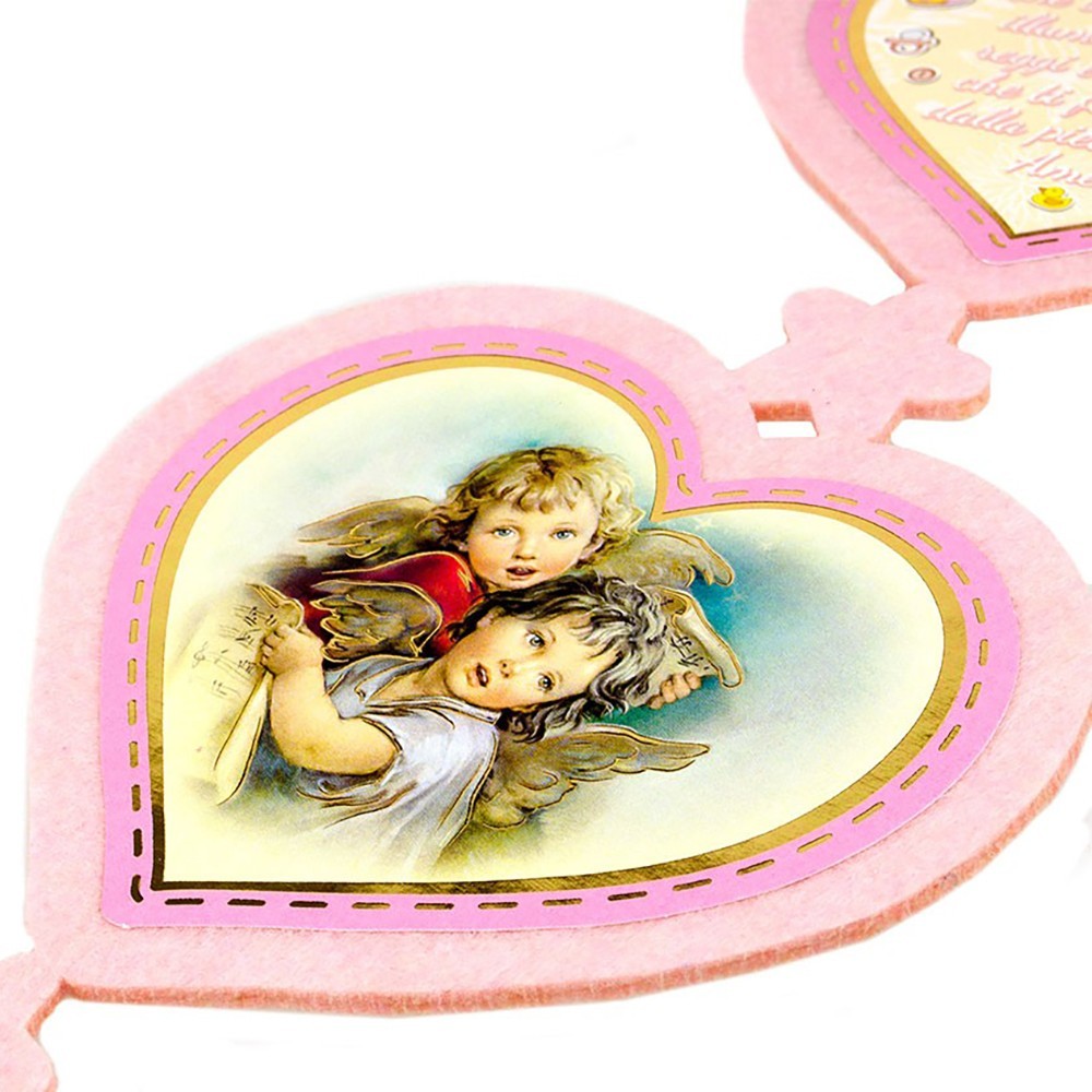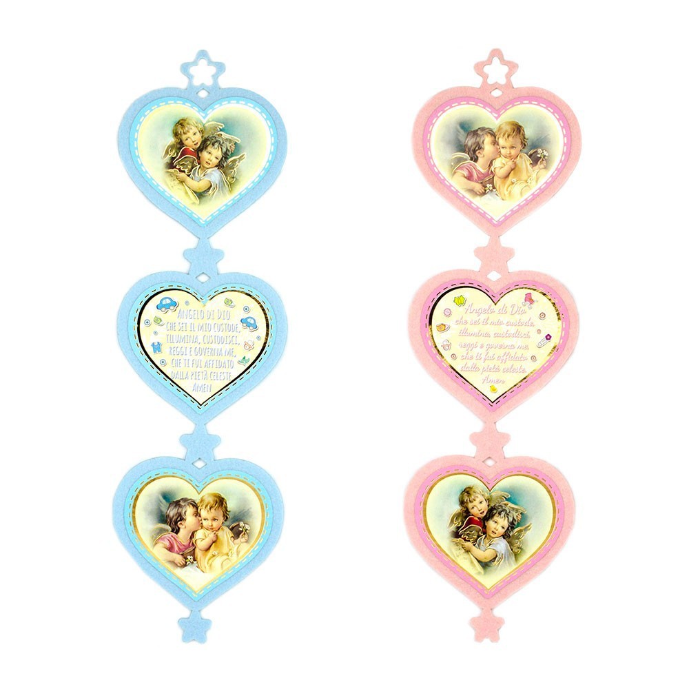 Cuore realizzato in feltro con preghiera stampata Angelo di Dio.