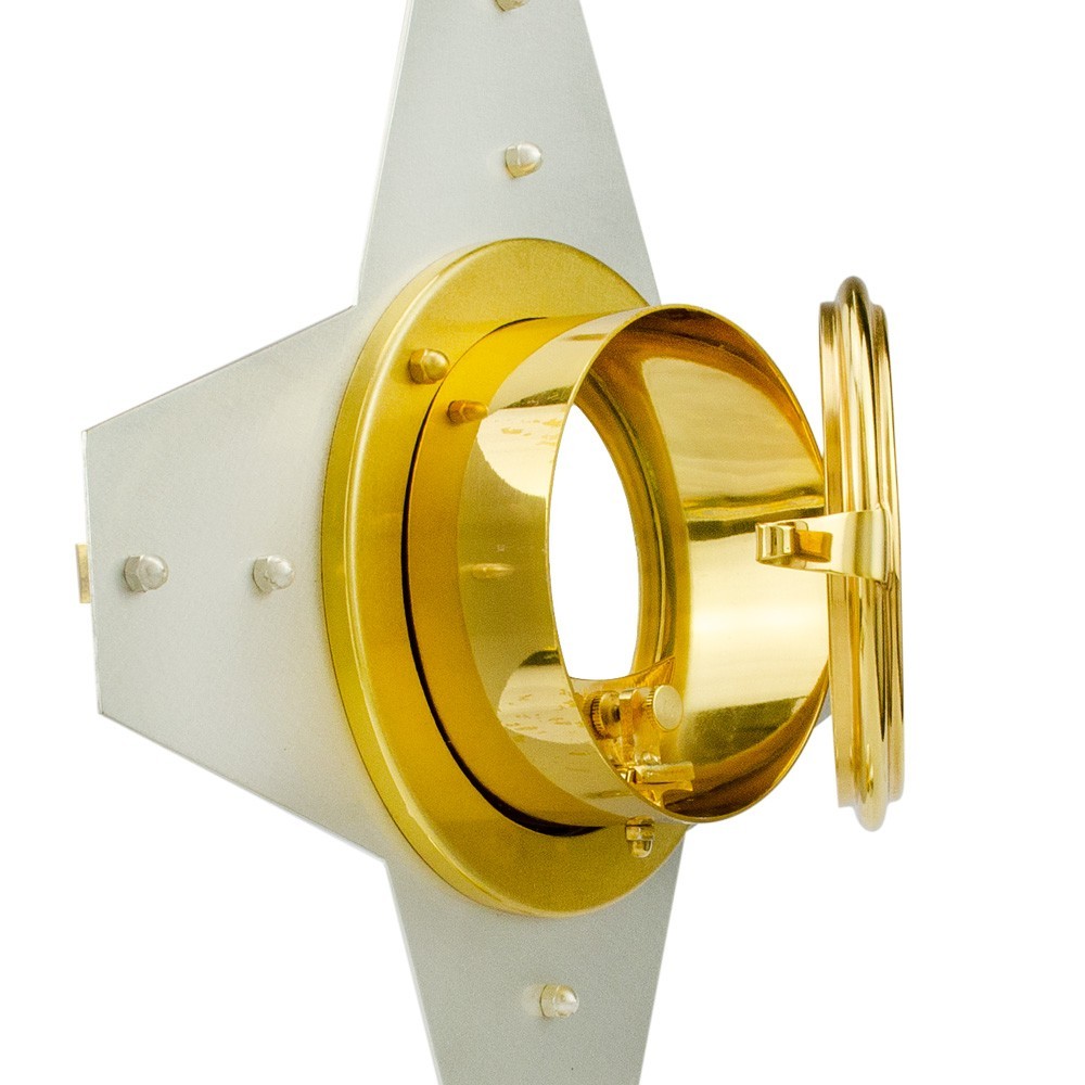 Ostensorio in ottone per ostia magna di diametro massimo 150 mm.