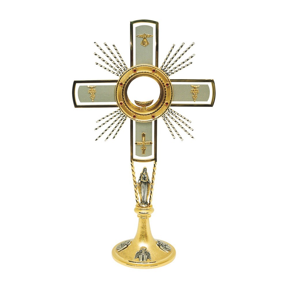 Ostensorio in ottone bicolore con finitura argento e oro.