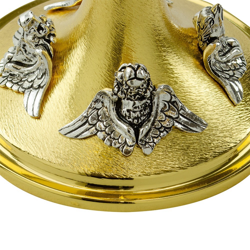 Teca esposizione in ottone argento e oro, h 23 cm.
