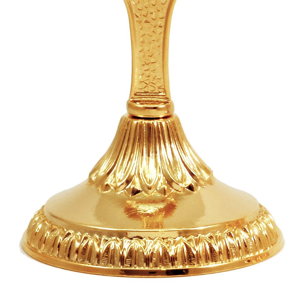 Teca in ottone gambo corto con base decorata.