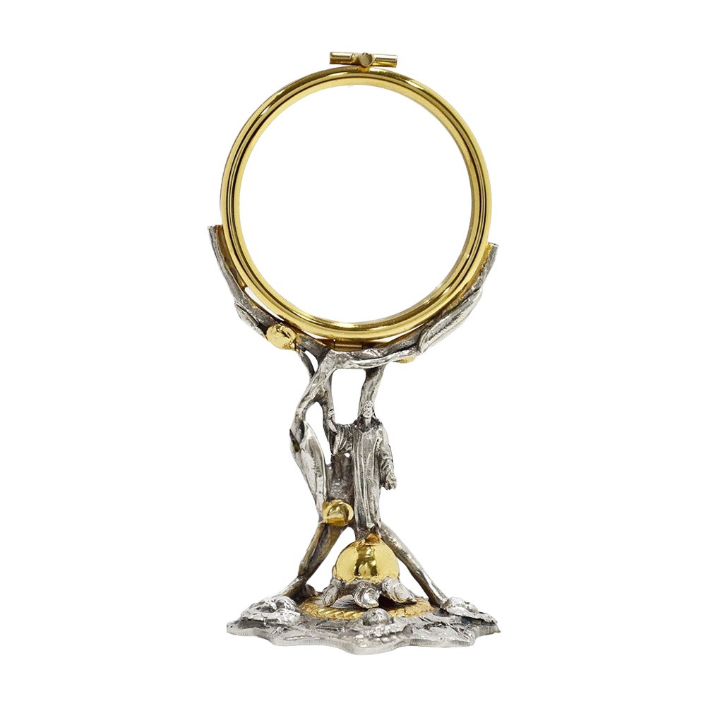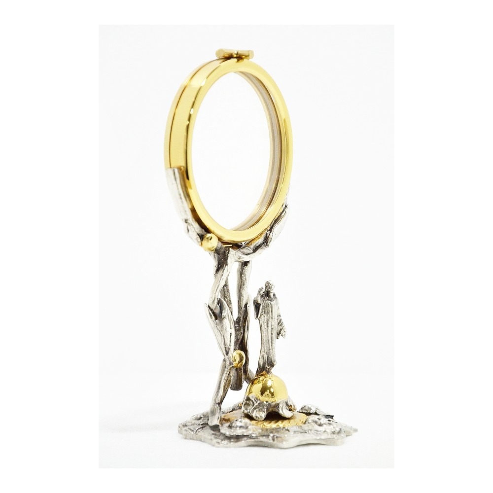 Ostensorio per adorazione Eucaristica. In ottone dorato e argentato con pressofusione del Cristo Risorto.
