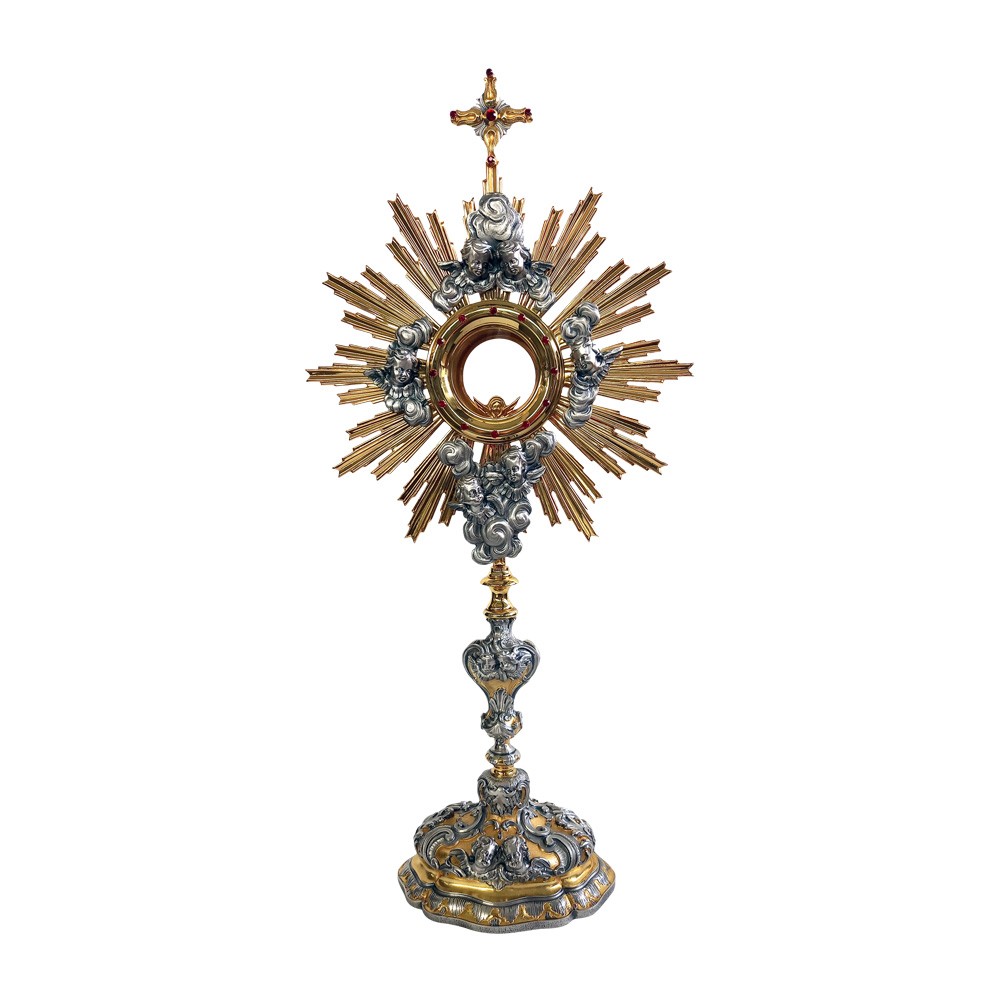 Ostensorio in stile barocco con lunetta e pietre preziose - Novità 2022.
