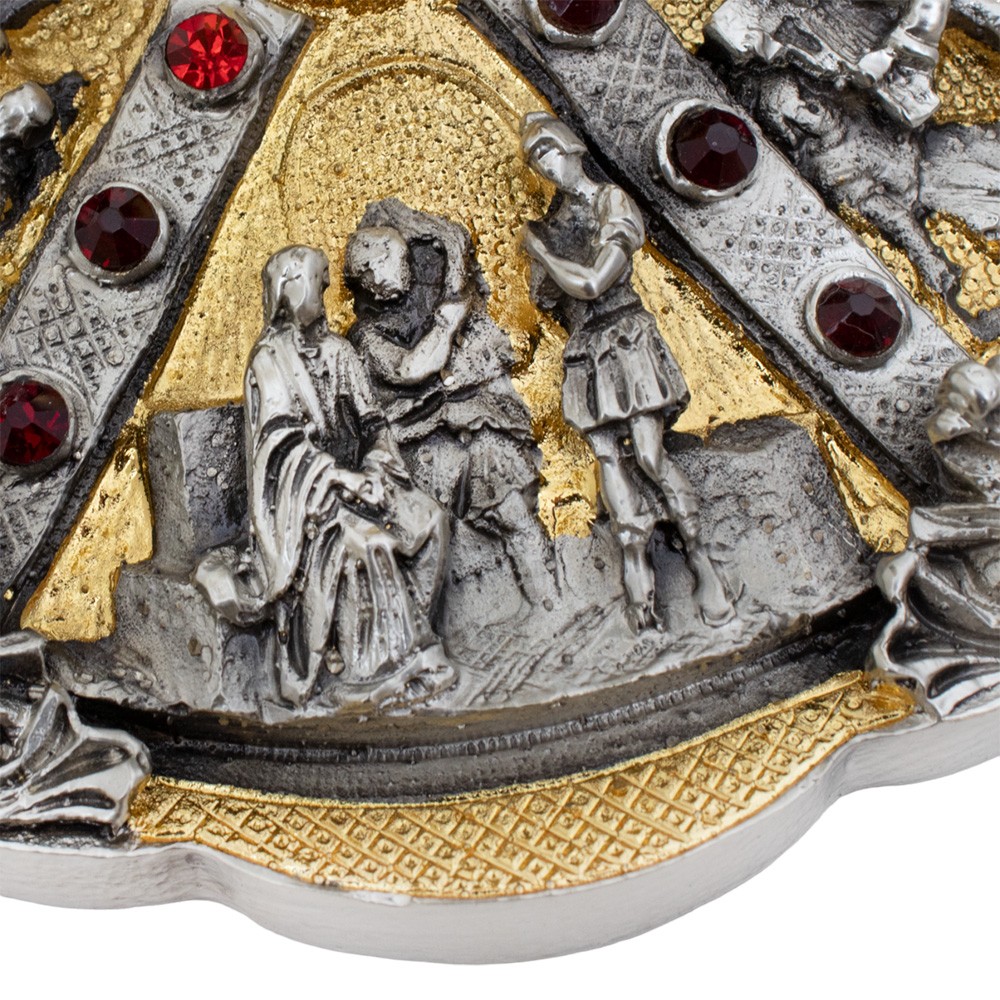 Realizzato interamente in ottone con finitura argentata e dorata.