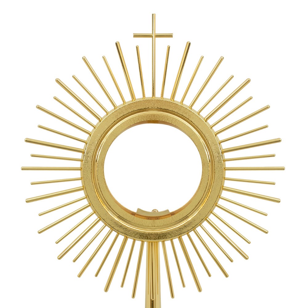 Ostensorio in ottone per ostia magna di diametro massimo 150 mm.