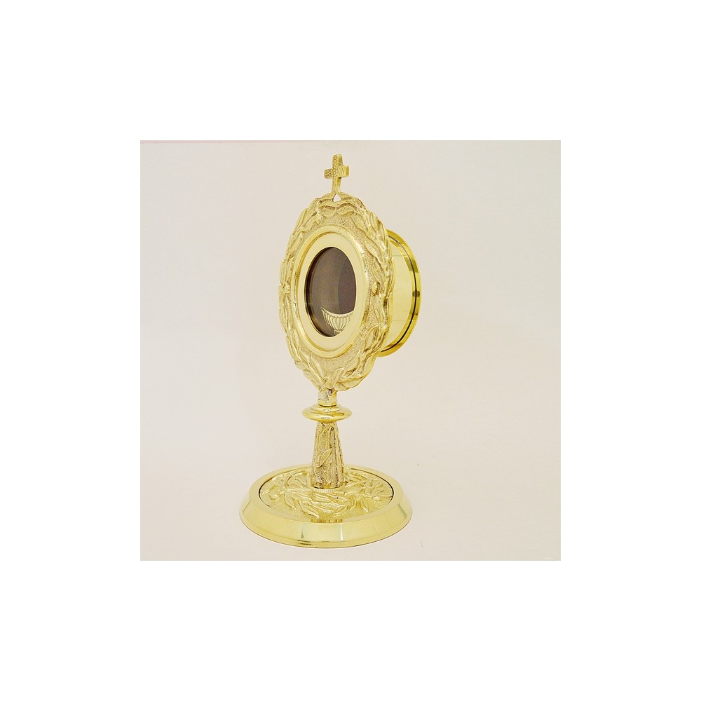 Ostensorio in ottone dorato per adorazione Eucaristica.
