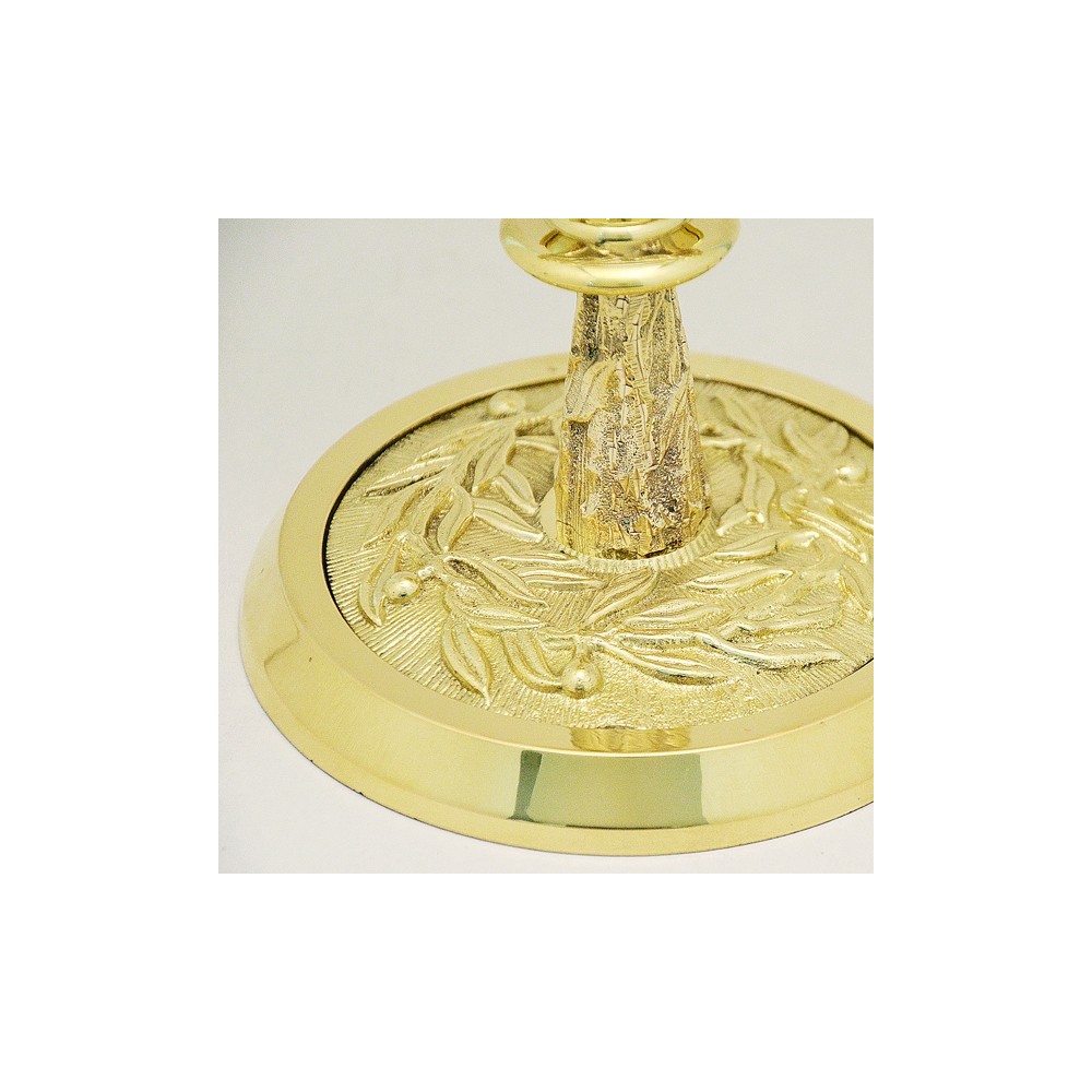 Teca in ottone dorato con base decorata.