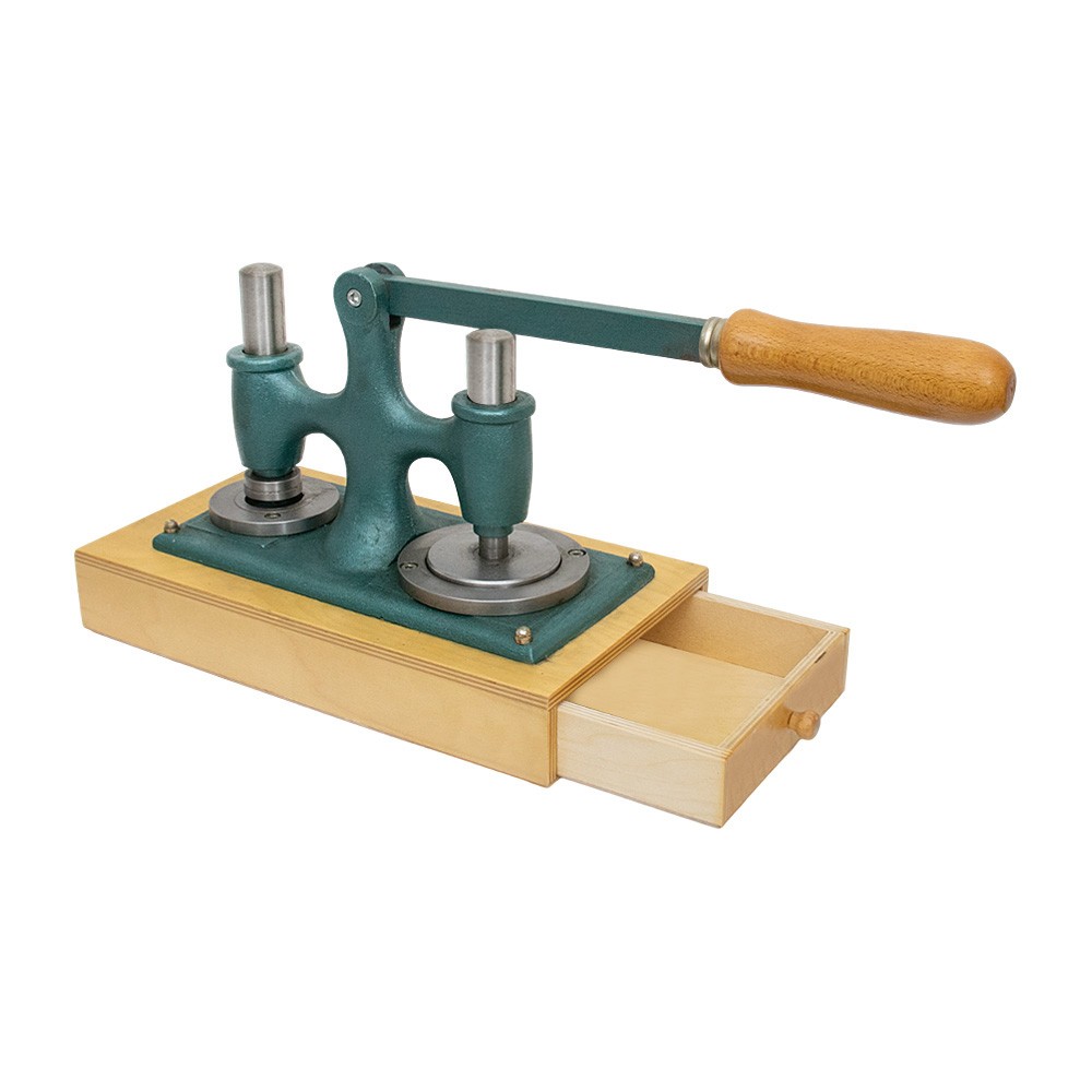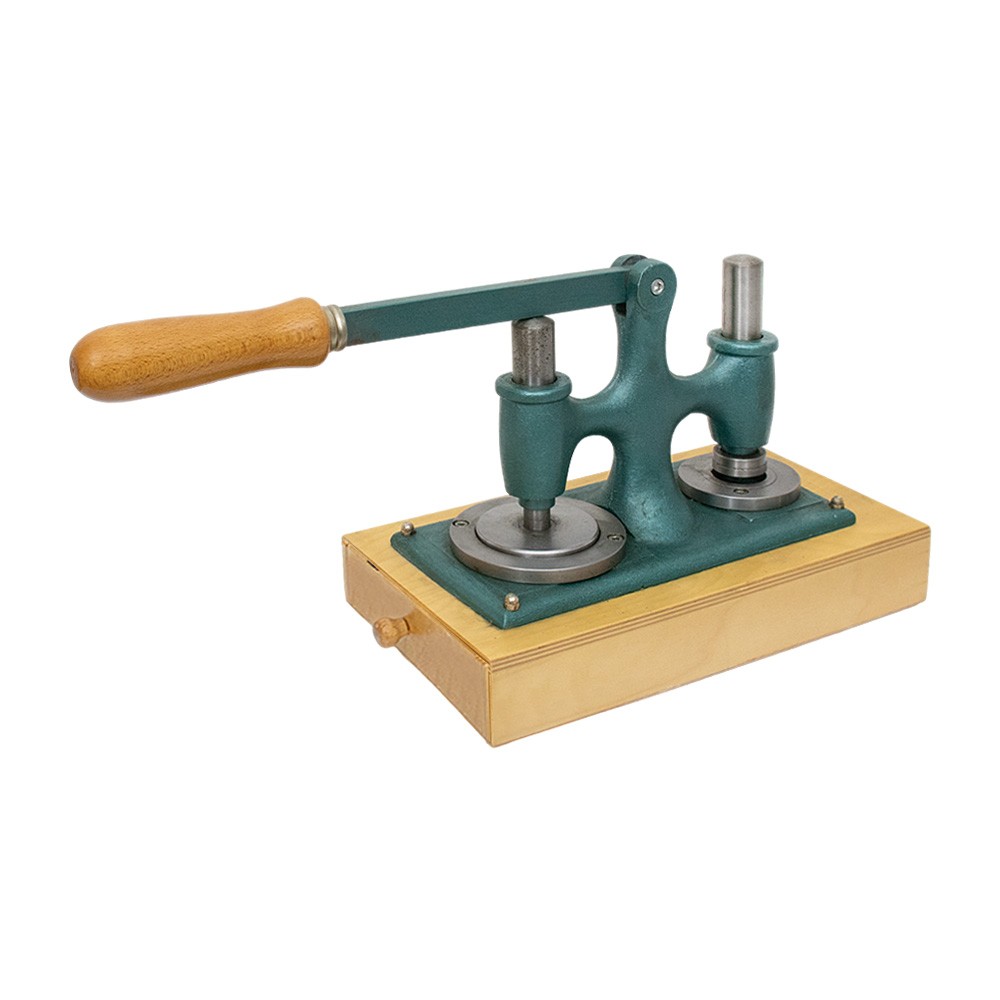 Questo accessorio è realizzato con punzone in acciaio, manico e mobiletto in legno completo di cassetto, perfetto per tagliare ostie e/o particole di diametro 35 mm e 75 mm.