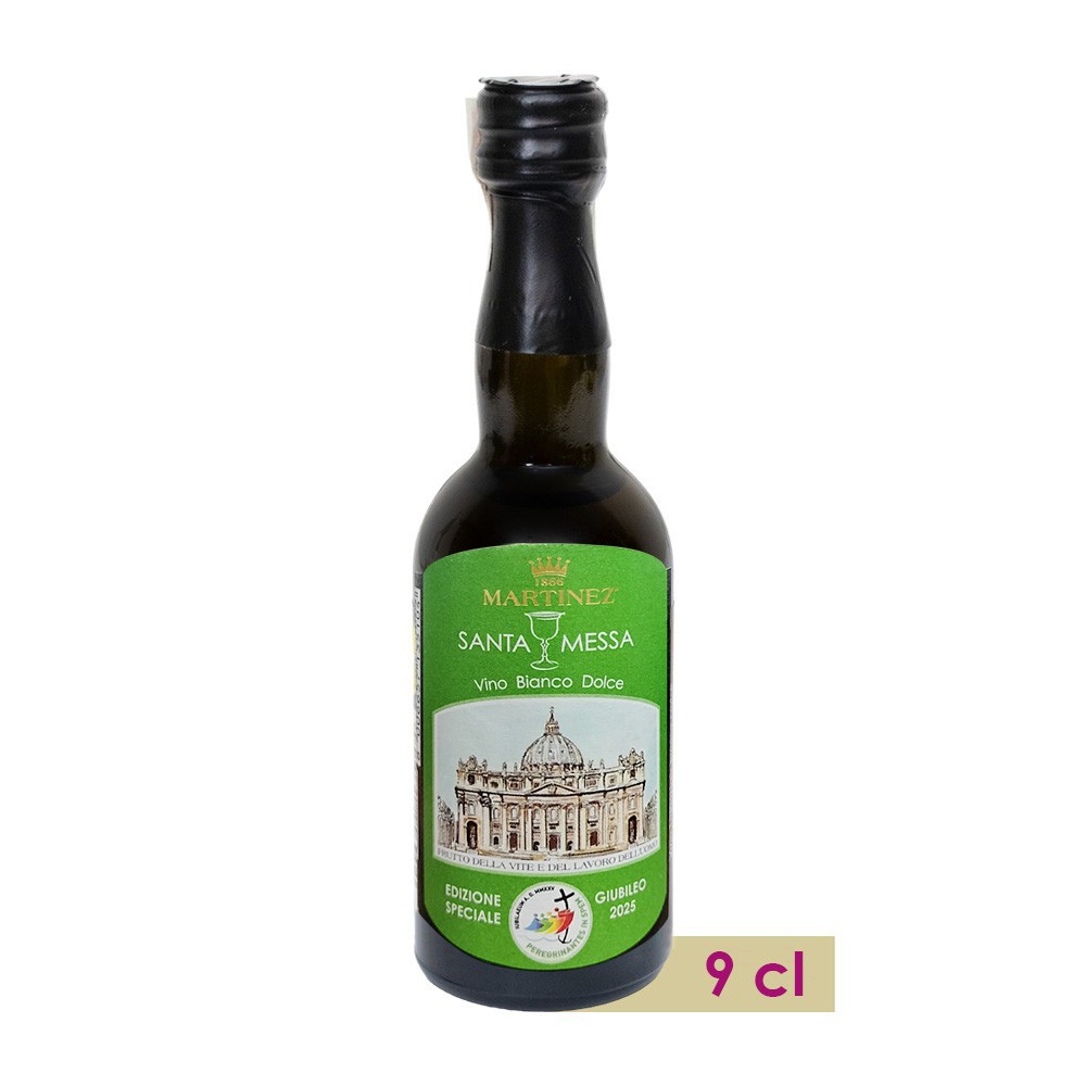 Vino bianco liquoroso e dolce da 9 cl perfetto la celebrazione liturgica della santa messa, prodotto dall'azienda Martinez. Realizzato in occasione della celebrazione del Giubileo 2025. - Pellegrini di Speranza.