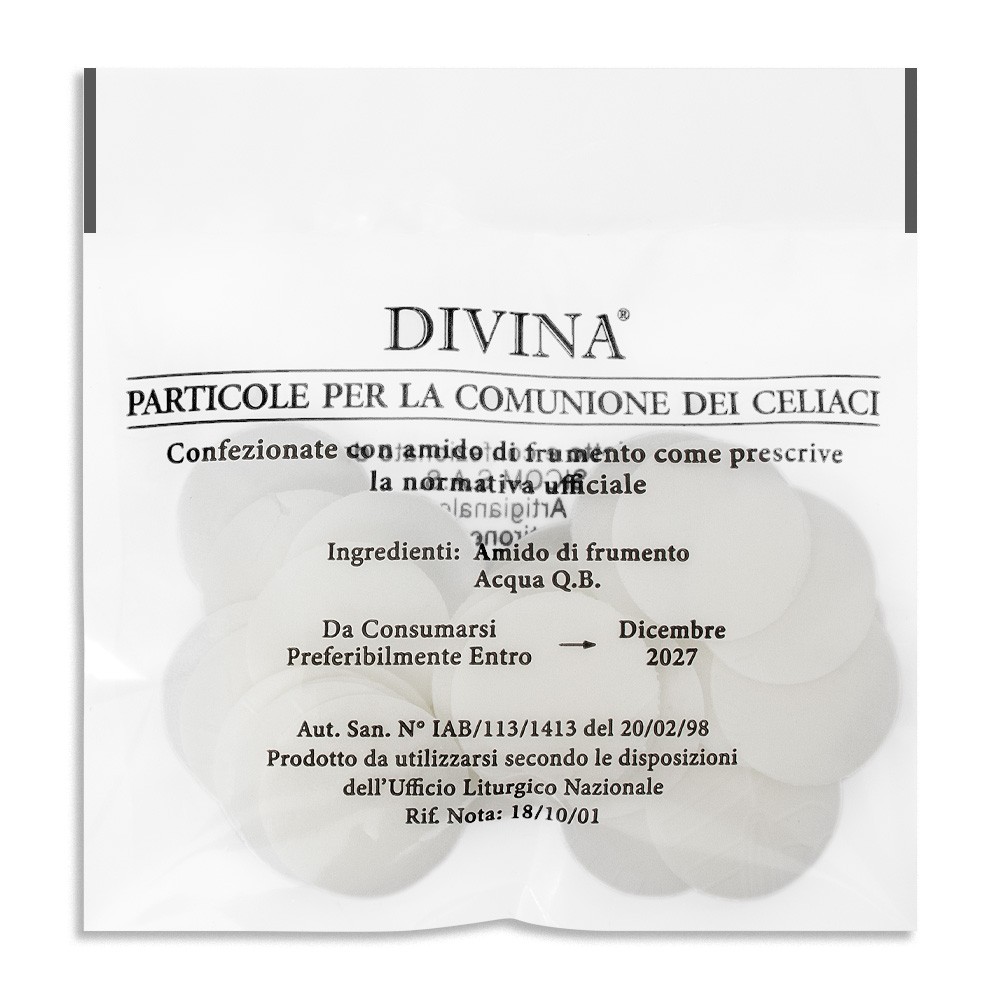 Le particole senza glutine per celiaci sono ideali per la Celebrazione Eucaristica, realizzate nel pieno rispetto delle normative vigenti in materia di lavorazione dei prodotti alimentari dedicati ai soggetti celiaci.